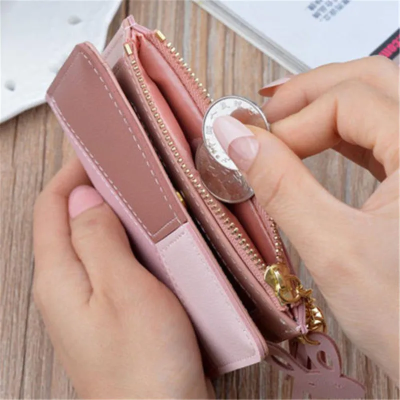 Новейший симпатичный кошелек, 1 шт., женская сумка для монет, кожаная женская простая, двойной, маленькая сумочка, кошелек, женские кошельки из искусственной кожи