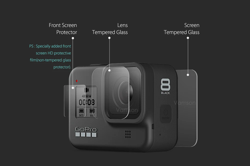 Защитное стекло Vamson для Gopro Hero 8 Black, 9 шт., защитная пленка на экран для экшн-камеры Go pro 8, камера VP720