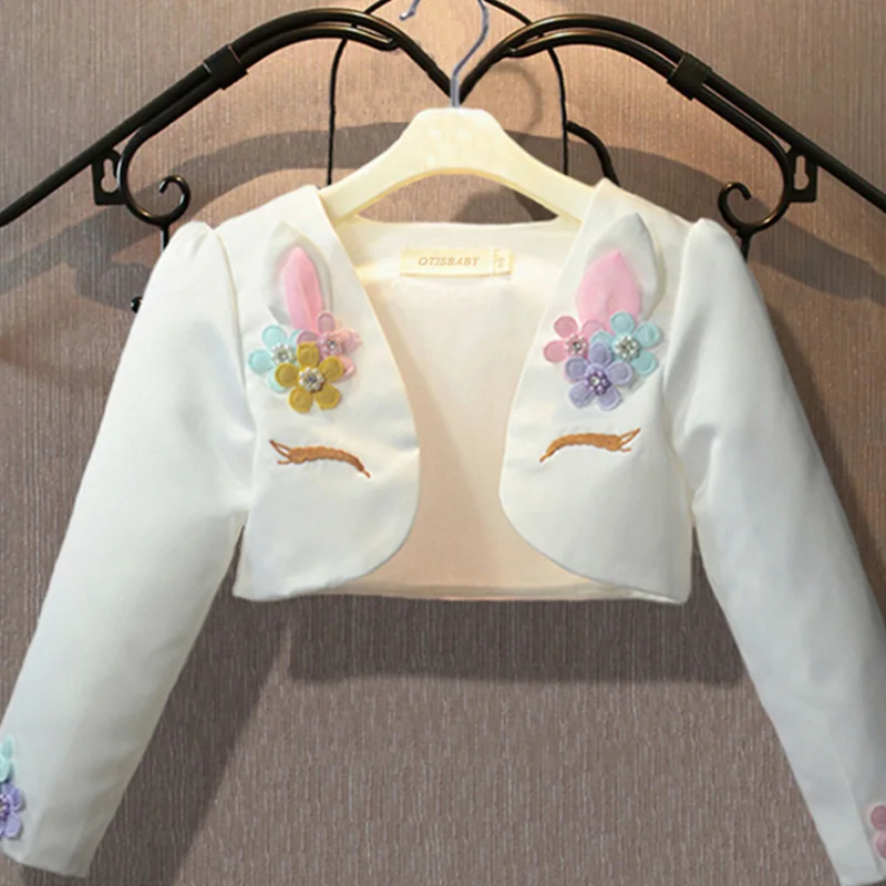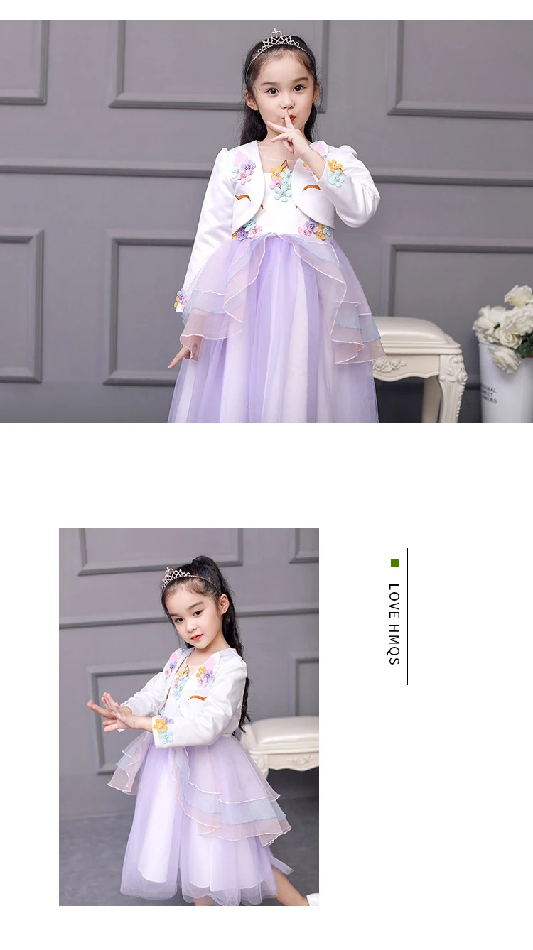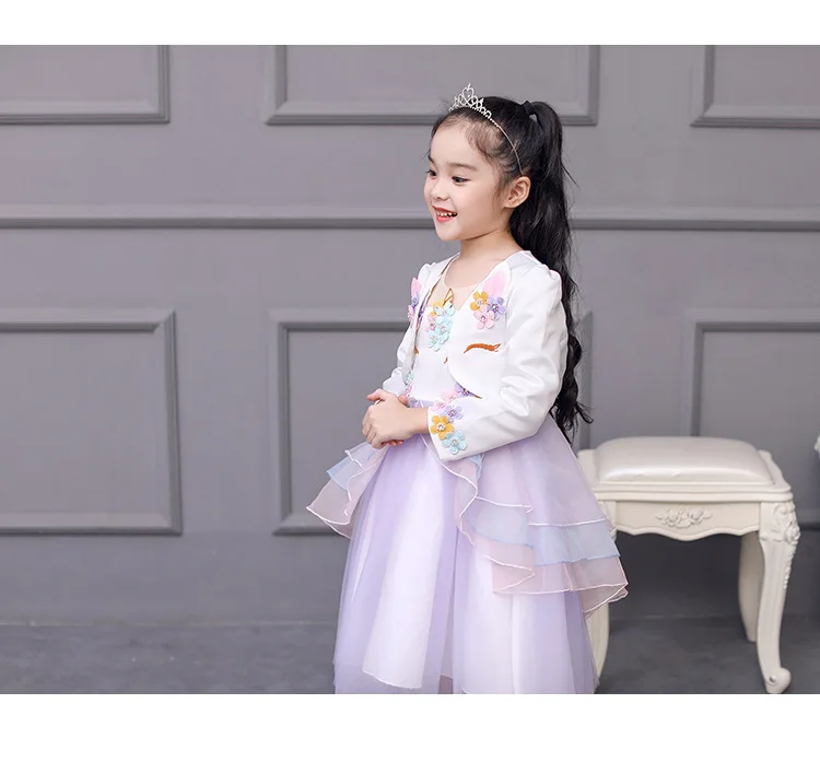 Осень-зима 2021, куртка с единорогом для девочек, платье принцессы, детский маленький жакет для девочек, Кардиган с длинным рукавом, Детское пальто