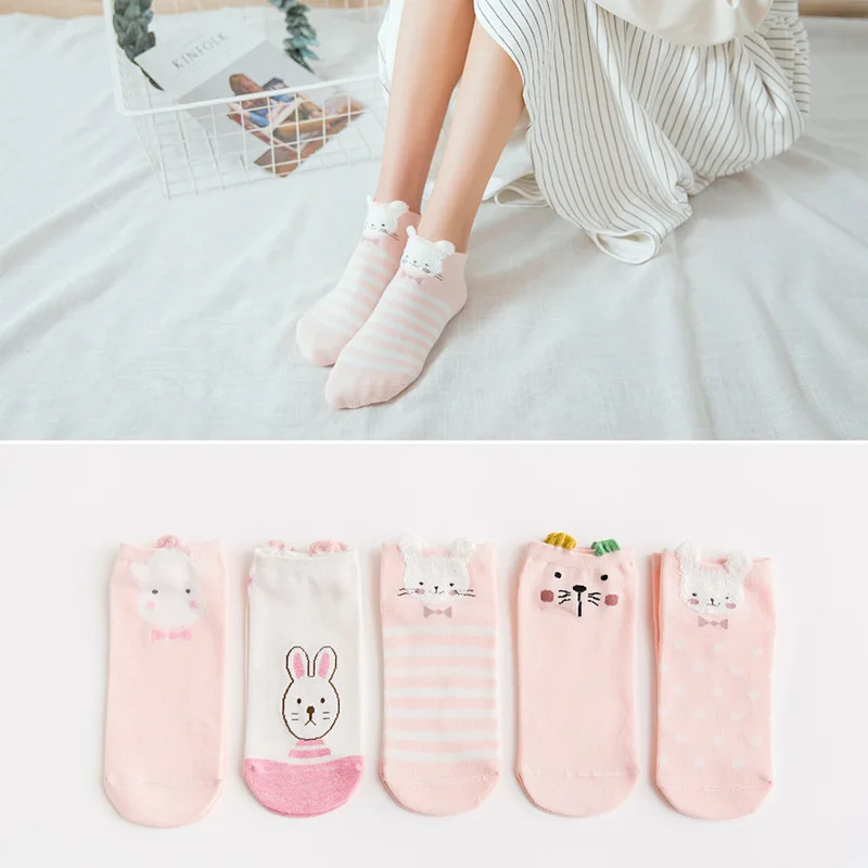 5 партЛот, женские хлопковые полосатые носки, женские короткие носки, повседневные носки с животными, ушами, красными сердечками, фотосессия 35-40
