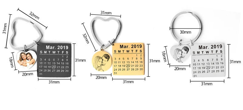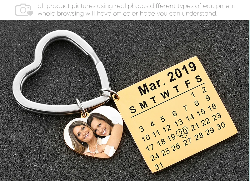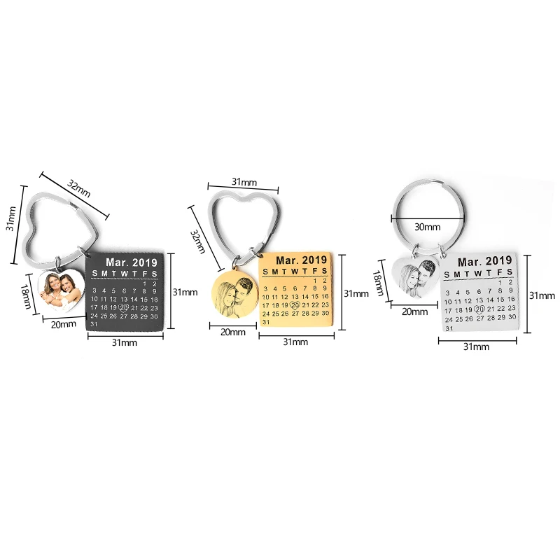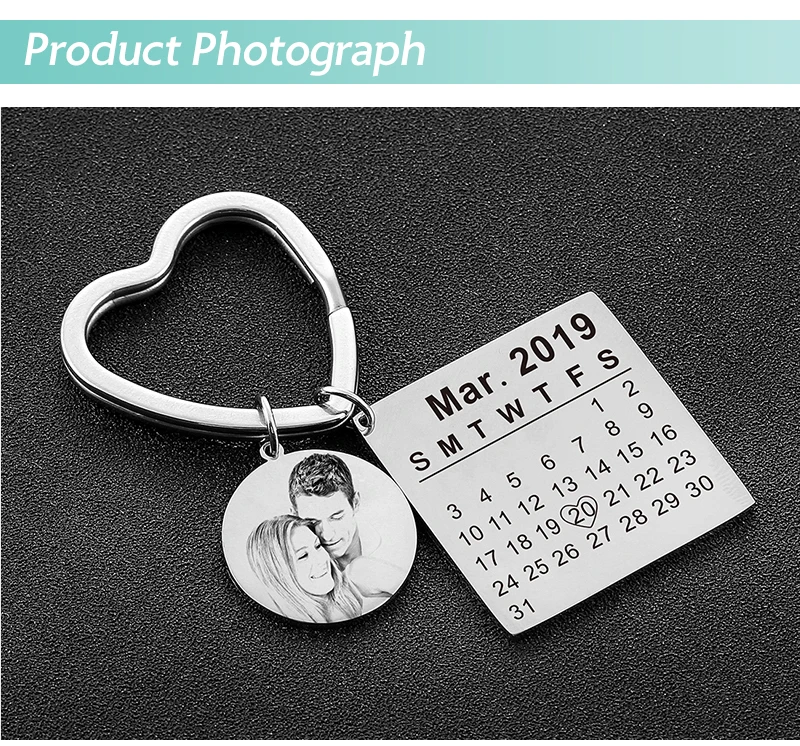 Индивидуальные индивидуальные брелок-календарь пользовательские фото юбилей Дата выделенная с гравировкой сердца Специальная Дата брелок подарок