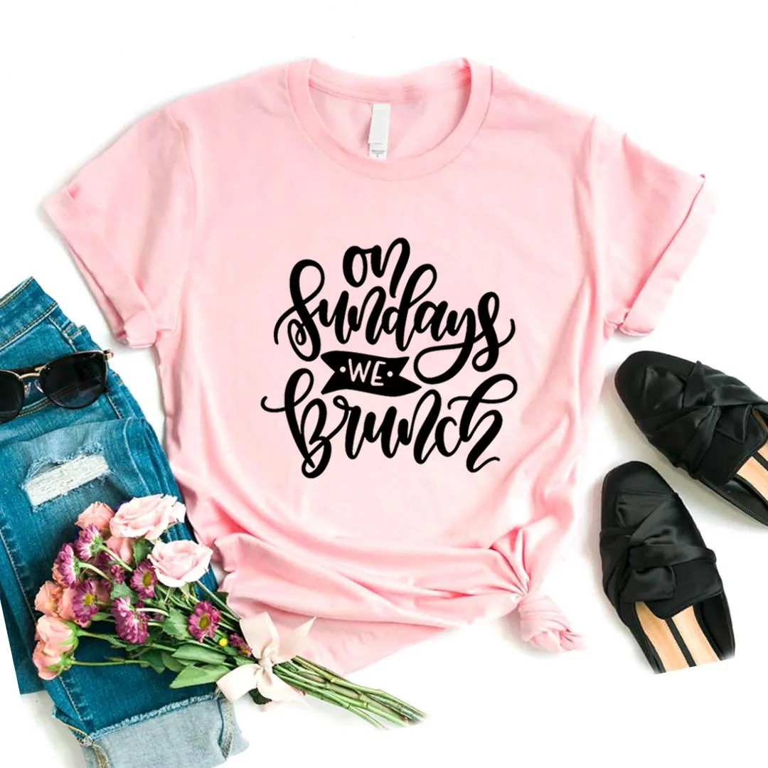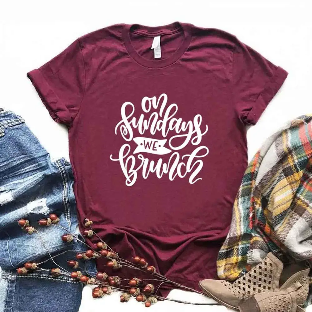 По воскресеньям мы Бранч печати для женщин футболки хлопок повседневное забавная Футболка для леди верхний тройник битник 6 Цвет Прямая поставка NA-776