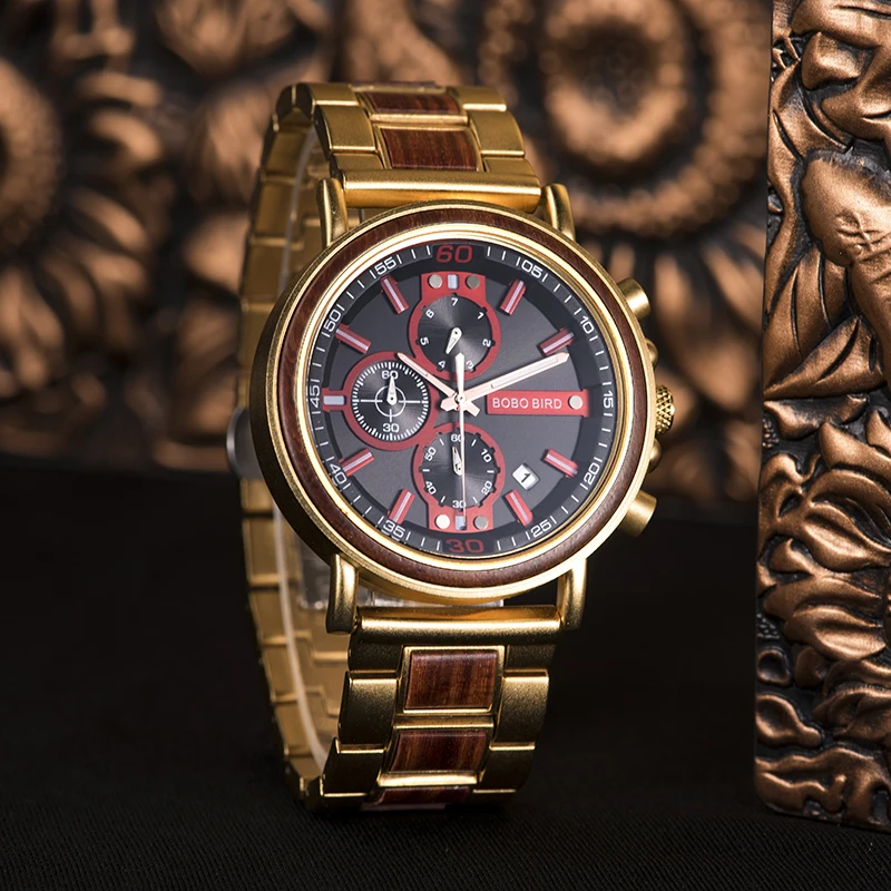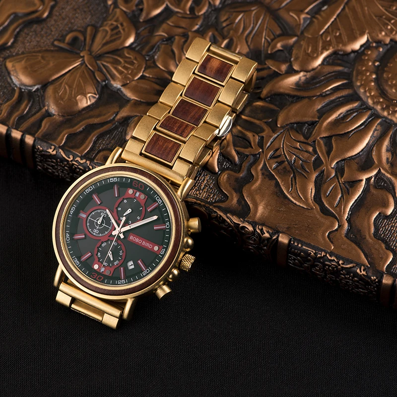 Мужские роскошные деревянные часы BOBO BIRD, часы из нержавеющей ст...