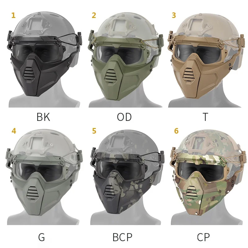 Особенности:Маска для лица:1. Оправа изготовлена из высококачественного ТПУ материала с прочностью, ударопрочностью и прочностью.2. Маска для лица сделана для защиты кожи от ветра, солнца, пыли, мусора, жуков и других нежелательных воздушно-десантных.3. Маска на половину лица имеет 3D дизайн окружности головы, который удобный естественный крой лица, высокая ударопрочность.4. Регулируемый оголовье держит вашу маску плотно и нейлоновая застежка для удобного ношения.5. Идеально подходит для активного отдыха, таких как страйкбол, пейнтбол, езда, охота, стрельба, Велоспорт и многое другое.Очки:1. Варианты линз делают их отличным для любого типа света в большинстве случаев и погодных условий2. Рама изготовлена из высококачественного термопластичного полиэтилена с прочностью, ударопрочностью и прочностью.3. Внутренняя часть очков имеет толстый дизайн губки, который может уменьшить шок на лице и обеспечить комфортные ощущения.4. Устойчивые к царапинам поликарбонатные линзы с противотуманным покрытием обеспечивают защиту UVA/UVB.5. Полное уплотнение обмотки объектива дает полное боковое видение и максимальную защиту.6. Регулируемый оголовье держит ваши очки плотно. Очки можно носить на голове, а также на шлеме.Технические характеристики:Материал оправы: TPE,ABSМатериал линз: поликарбонатЦвет: BCP,CP, черный, коричневый, зеленый, серыйРазмер маски для лица: 20x12 смОчки Размер: 18.5x8.5cmНомер модели: Тактические Защитные маскиПрименимые сцены: Тактические, Кинопроекты, досуг на открытом воздухе, повседневный досуг, Семейные развлеченияВес: 0,28 кгПосылка включает в себя:1x Маска для лица1x очки