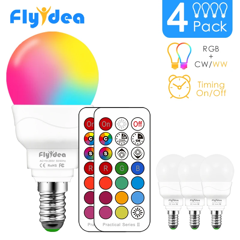 Светодиодсветильник лампочка RGBW, 21 клавиша, инфракрасный контроллер, умная лампочка, многоцветная, с регулируемой яркостью, изменение цвета, светодиодный ночсветильник AC 110 в220 в