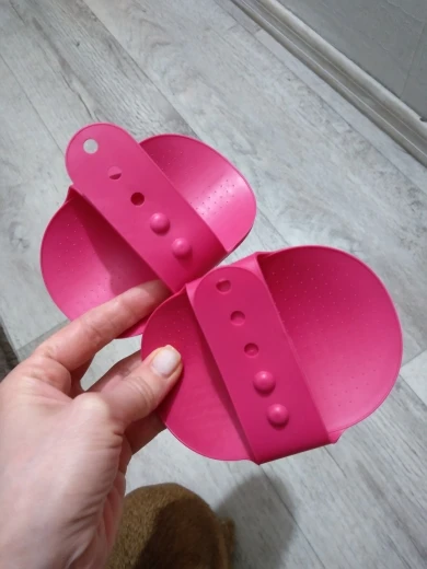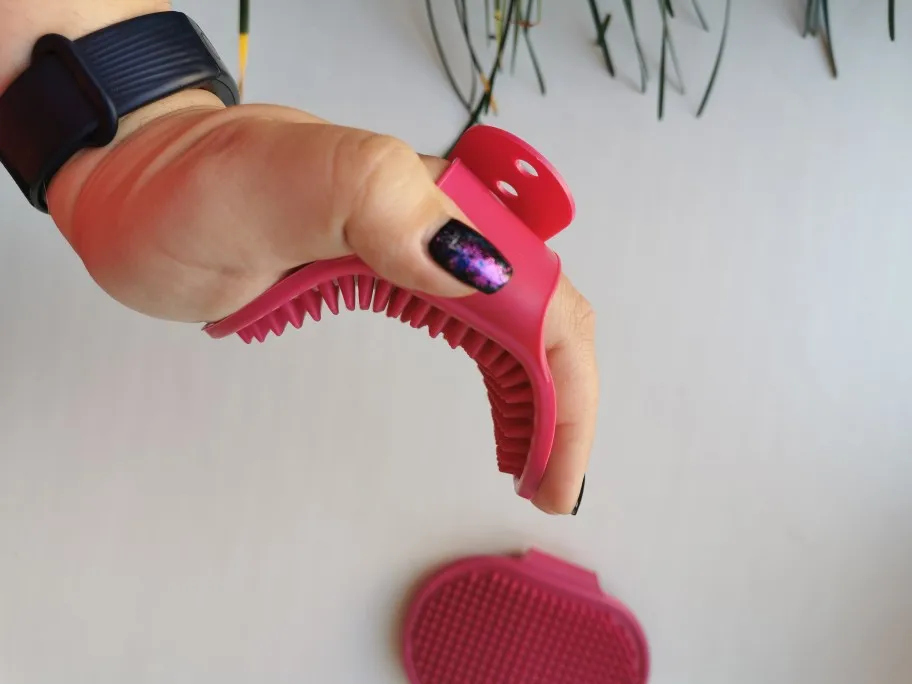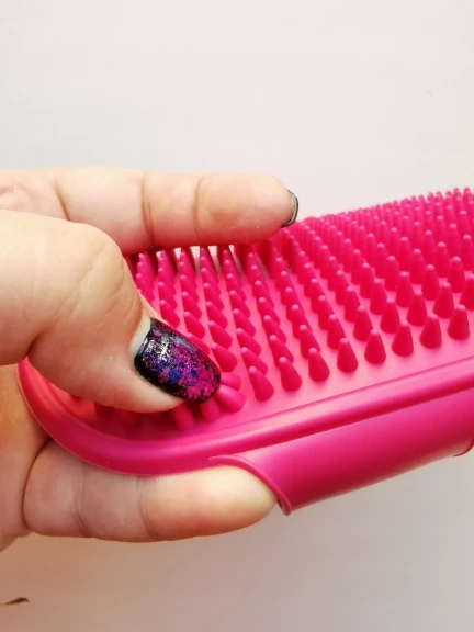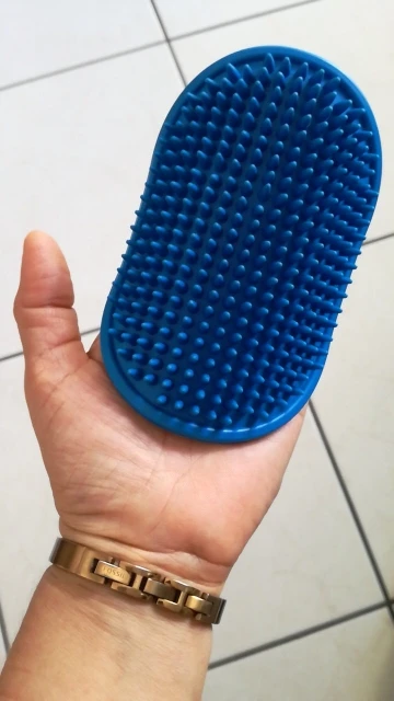 Брала как массажную щётку. Нужно приспособиться, чтобы во время массажа не слетал с рук. Твёрдость оптимальная, но хочется длиннее зубчики.