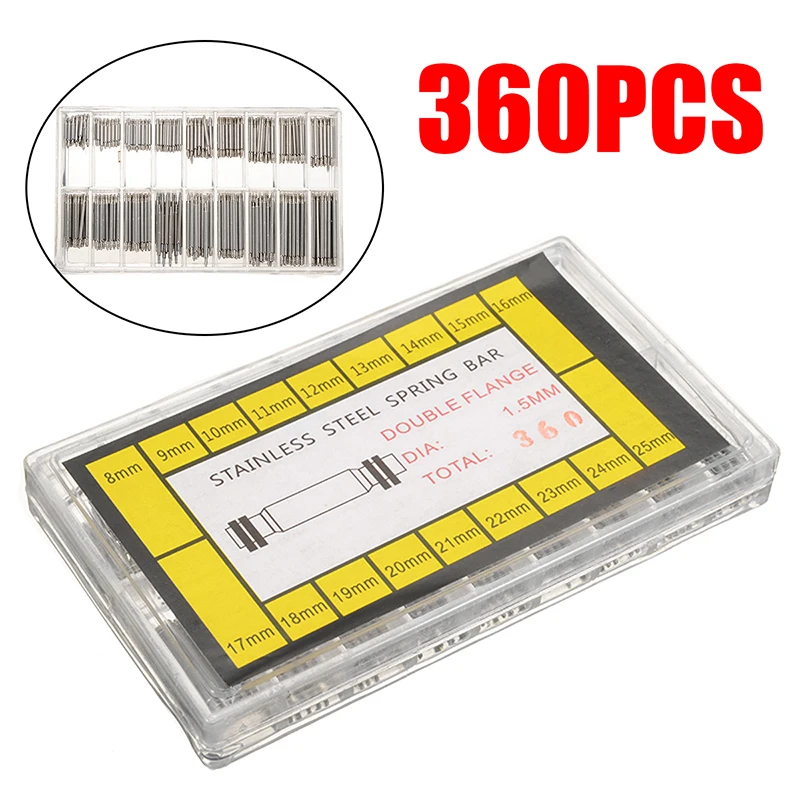 Штифты для часов, 8-25 мм, пружинные штифты, нержавеющая сталь, 360 шт.