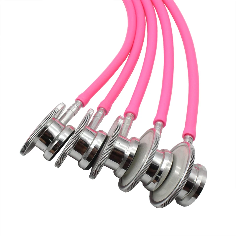 Стетоскоп в основном состоит из звуковой части звукоснимателя (грудь), проводимой части (резиновая трубка) и прослушивающей части (Ушная часть). Его роль заключается в передаче звука тиофена, который усиливает Внутренний звук сердцебиения пациента и передает его в ухо врача.Стетоскоп может не только слушать пульс, но и слушать, является ли Пульс аккуратным, имеет ли область азкультации диафрагмы аномальные звуки и шумы сердца, но также можно слушать легкие звуки дыхания, будь то влажные и сухие алки. Последним является возможность слушать шею, живот и бедренную артерию с или без аномальных сосудистых шумов, а также необходимость дополнительного артериального давления. Область применения:1. Обычно используется для аускуляции сердца, легких, пульса и других органов организма.2. Используется для усиления звука пульса при измерении артериального давления, легко диагностировать врачами3. Дыхательная система, может использоваться для прослушивания звуков дыхания легких, для выявления поражений легких4. Используется для аускуляции звуков сердца плода5. Сердечно-сосудистая система, может использоваться для прослушивания пульса, звуков сердца, шумов сосудов и т. д.