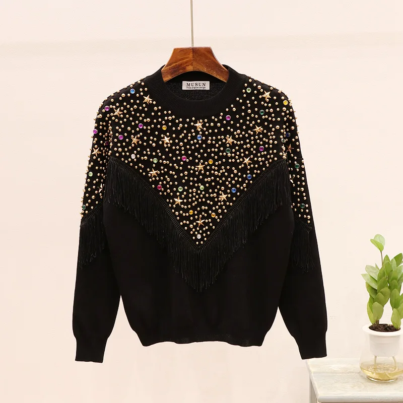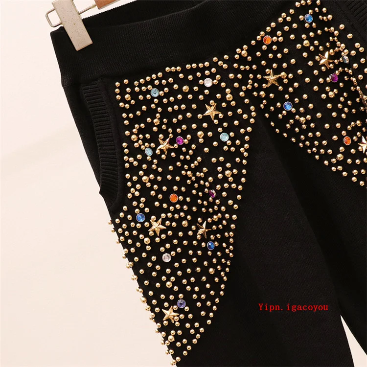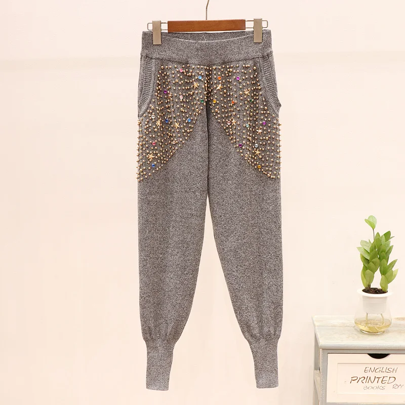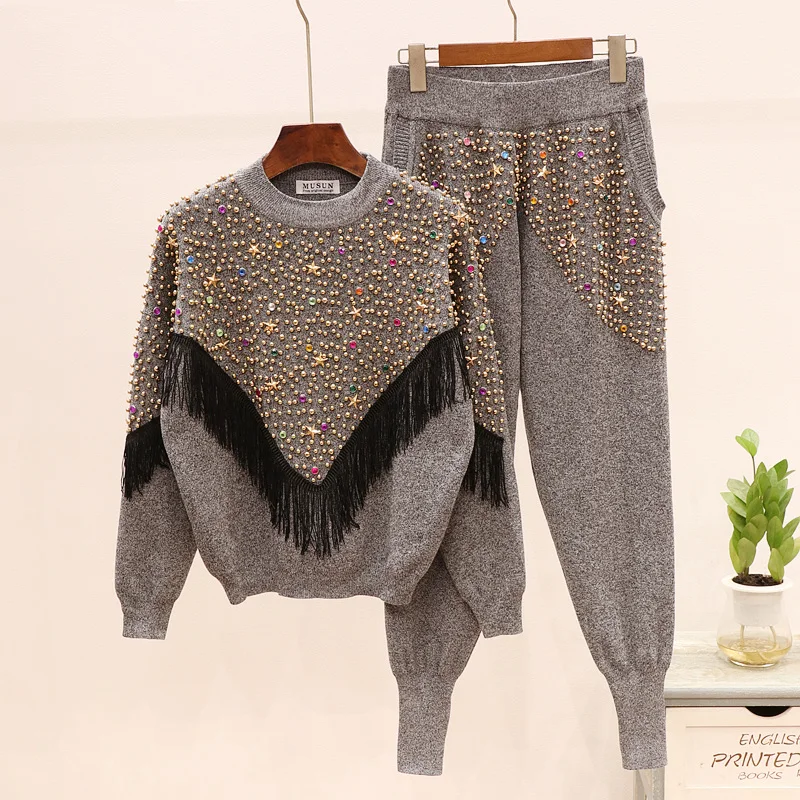 Спортивный костюм женский, вязаный свитер с кисточками и штаны-карандаш, Осень-зима