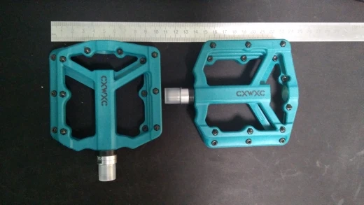 Качественный продукт от CXWXC. Нейлон (материал, который не должен колоться и рваться). На торце оси - слот под шестигранник. Прорези шириной 30 мм для установки мягких туклипсов. Я предпочел бы, чтобы оси вращались с большим усилием, но люфтов нет (ни в одной из 6 заказанных педалей). Цвета спокойней (благородней), чем на фото от продавца. Спасибо!!