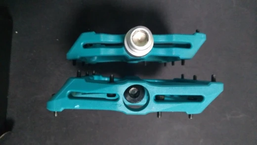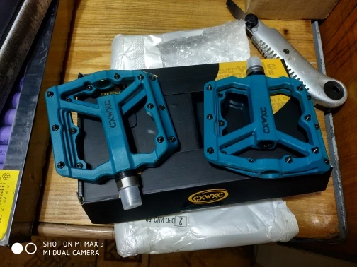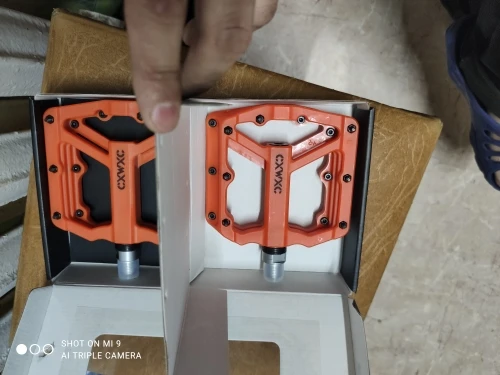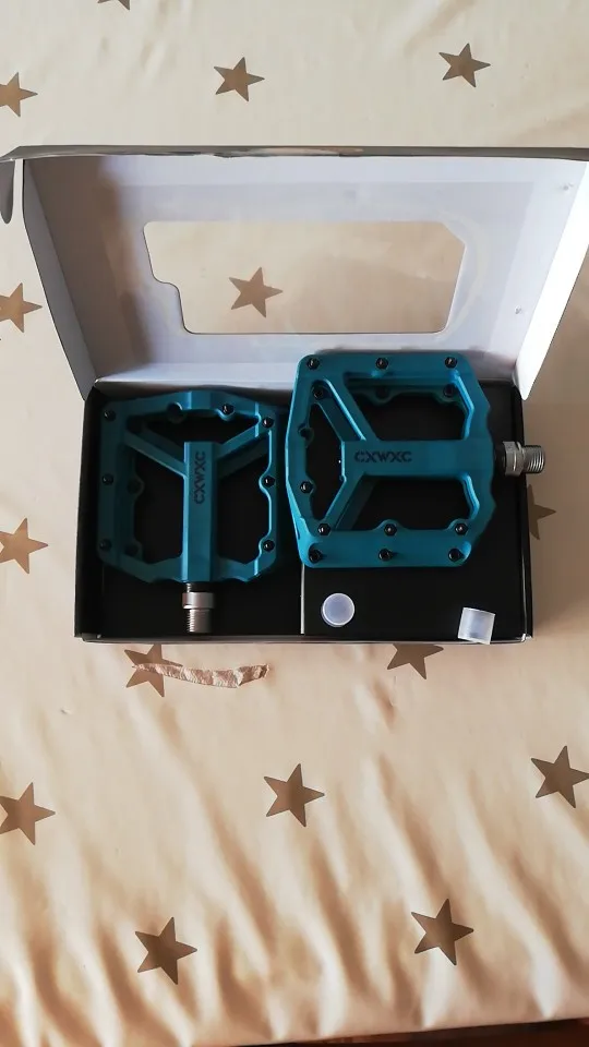 Визуально отличные педали,пришли в коробке, крутятся плавно и легко, вес не большой,зацепы(шипы) в виде болтиков под шестигранник, если сильно торчат то думаю можно будет подложить шайбы и сделать короче,пока не разбирал, но судя по всему подшипники есть. Установлю, обкатаю, дополню отзыв(если не забуду).