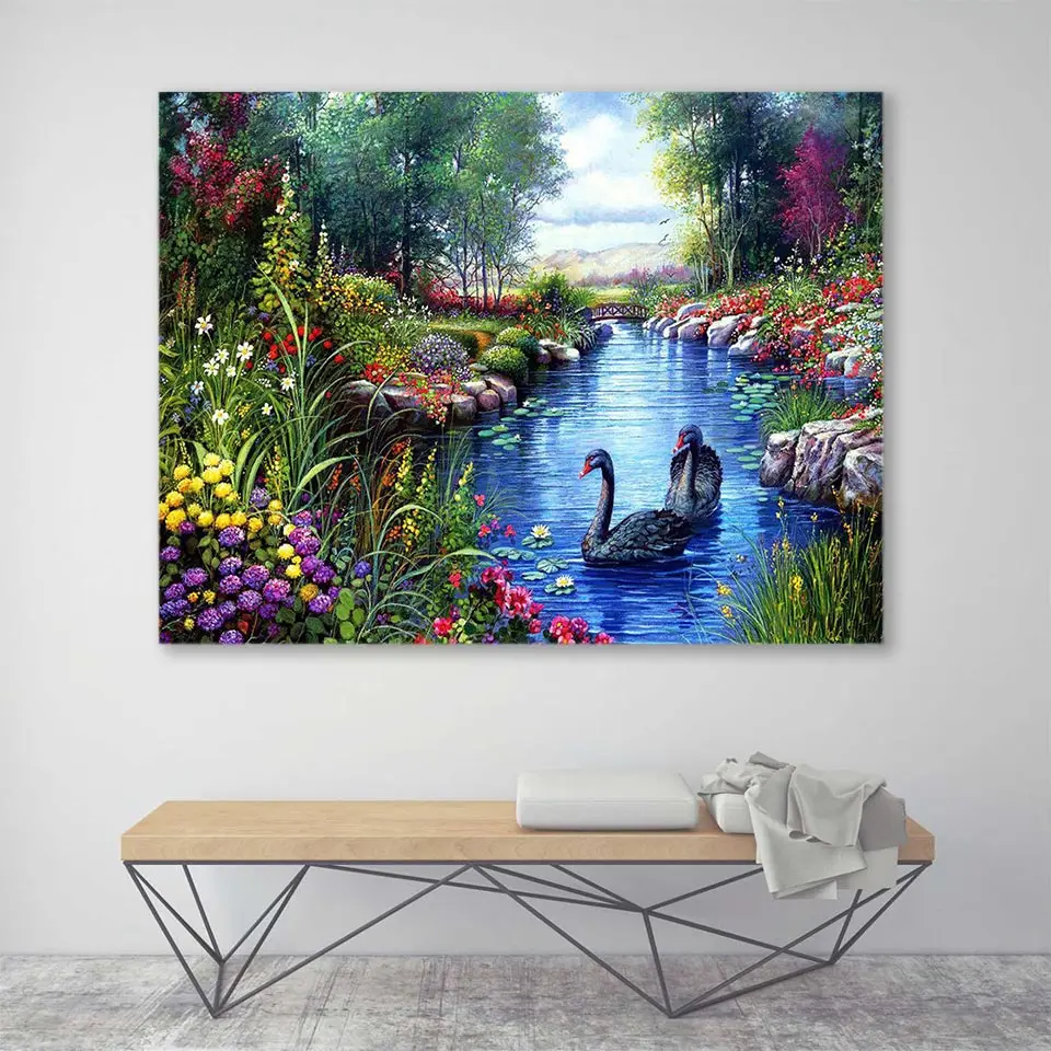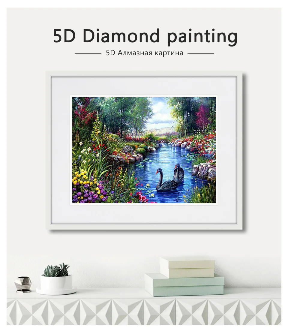 5D алмазная живопись сделай сам, лебедь, пейзаж, вышивка крестиком, полная Алмазная вышивка, животные, пейзаж, мозаика, стразы, картина, домашний декор