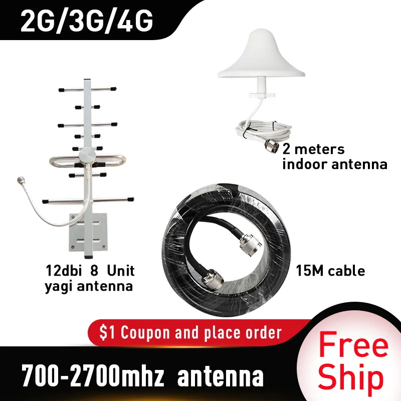 Внешняя антенна Yagi CDMA UMTS GSM LTE DCS 700-2700 МГц 12dBi усиление для сотового телефона усилитель повторитель Omni антенна с кабелем 2 м Упаковка включает в себя: 1. Наружный блок 8 Yagi антенна 2. Внутренняя Omni антенна 3. Кабель 15 метров