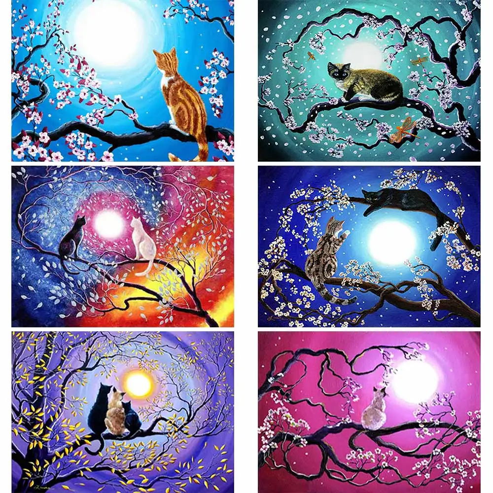 Кошка дерево Луна Алмазная картина Животное Мультфильм Круглый полный дрель Nouveaute DIY мозаика вышивка 5D Вышивка крестом домашний декор подарки