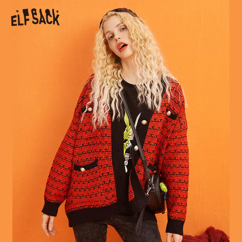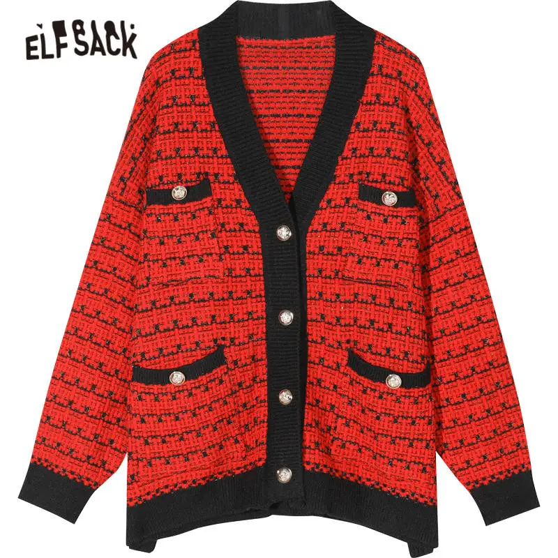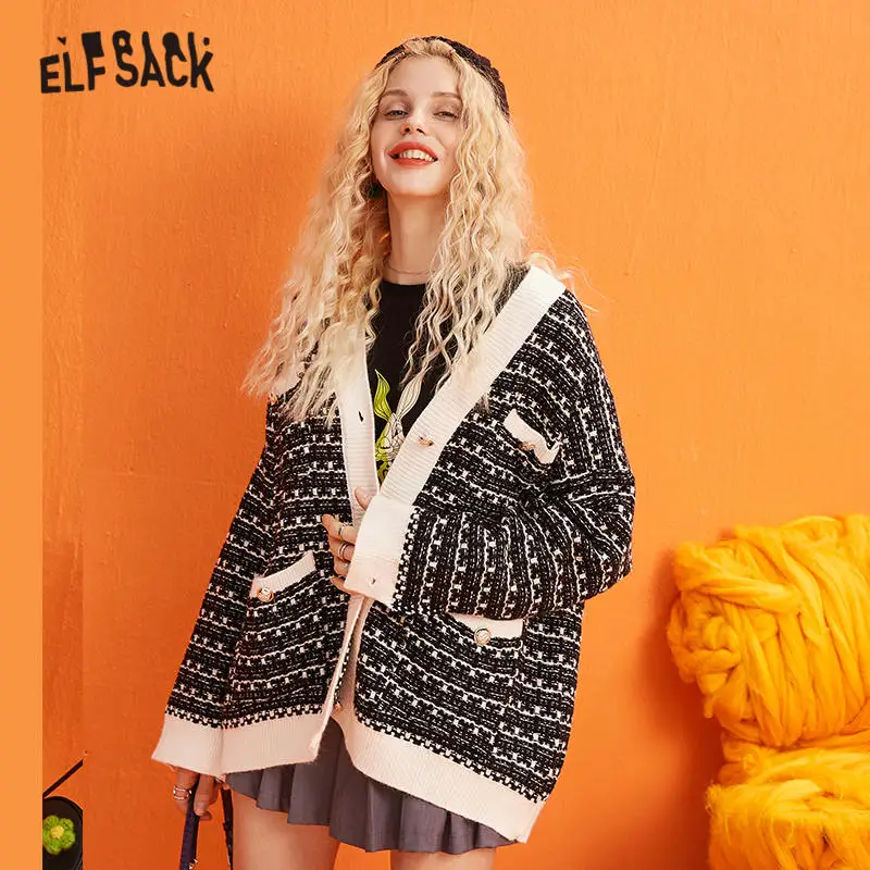 Женский вязаный Топ с металлическими пуговицами ELFSACK, однотонный офисный Повседневный трикотажный кардиганы, женские свитера, зима 2019