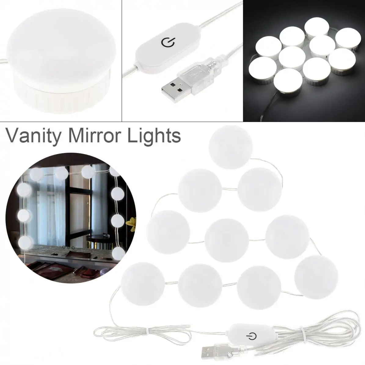Светодиодный светильник для косметического зеркала s в комплекте с 10 лампочками лампочки с регулировкой силы света, осветительная лента для макияжа, туалетного столика