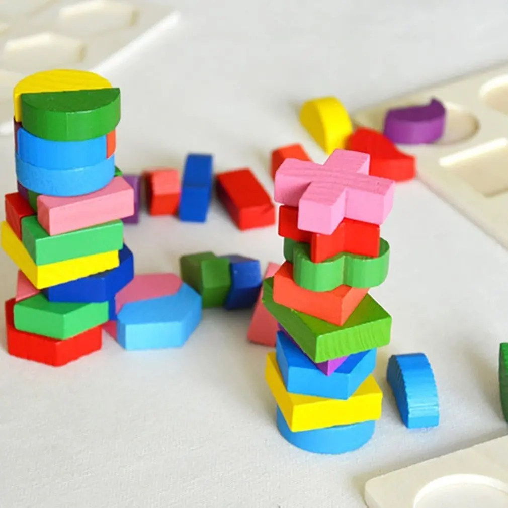 Детские деревянные геометрические блоки, пазлы, игрушки для детей, интеллектуальный обучающий инструмент для раннего обучения, игрушка для детей, подарок