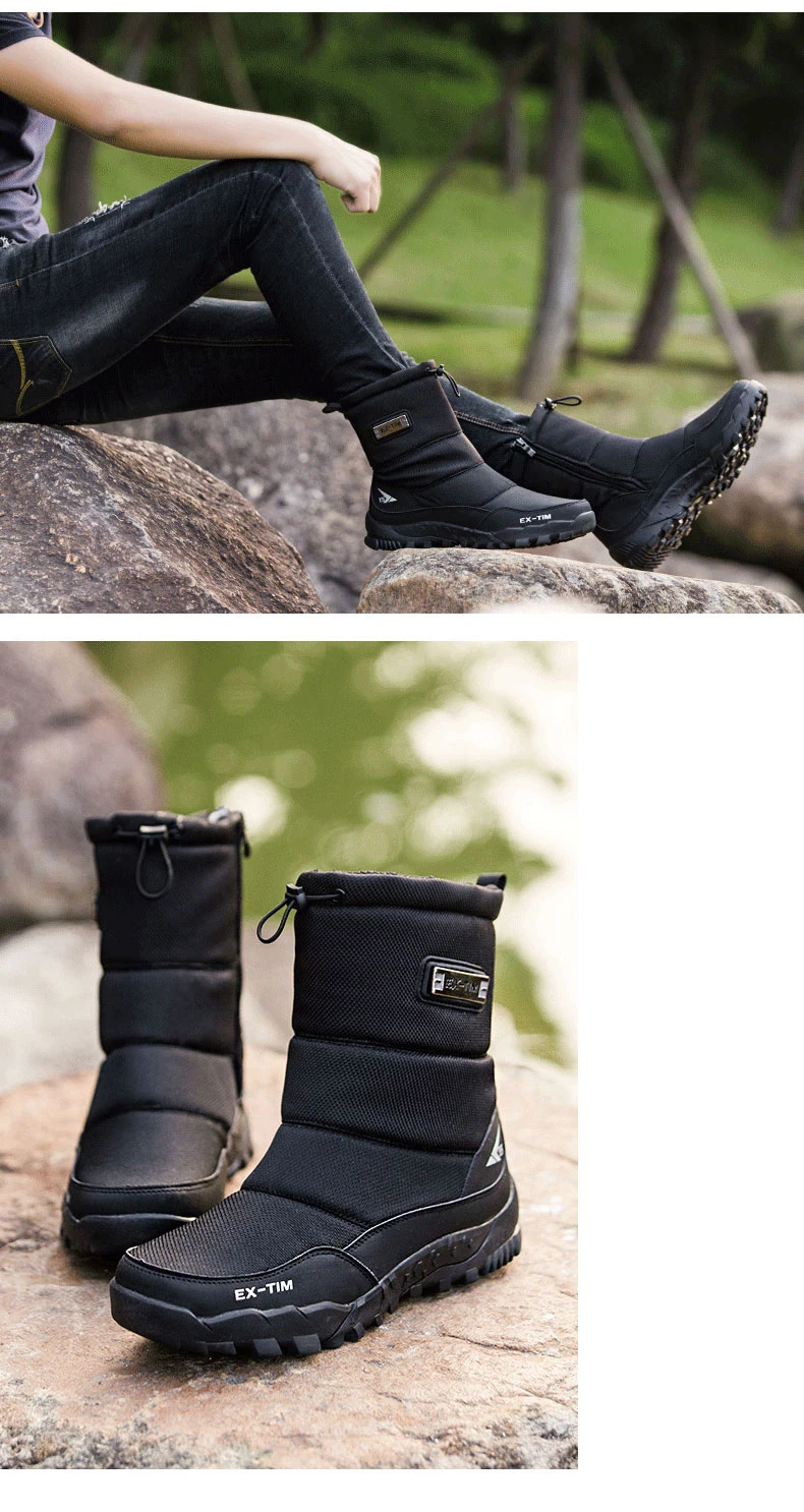 Зимние мужские ботинки; Теплая мужская обувь; Теплые зимние ботинки; Мужские ботинки до середины икры; Мужская зимняя обувь; Зимние ботинки из толстого плюша и 30% шерсти
