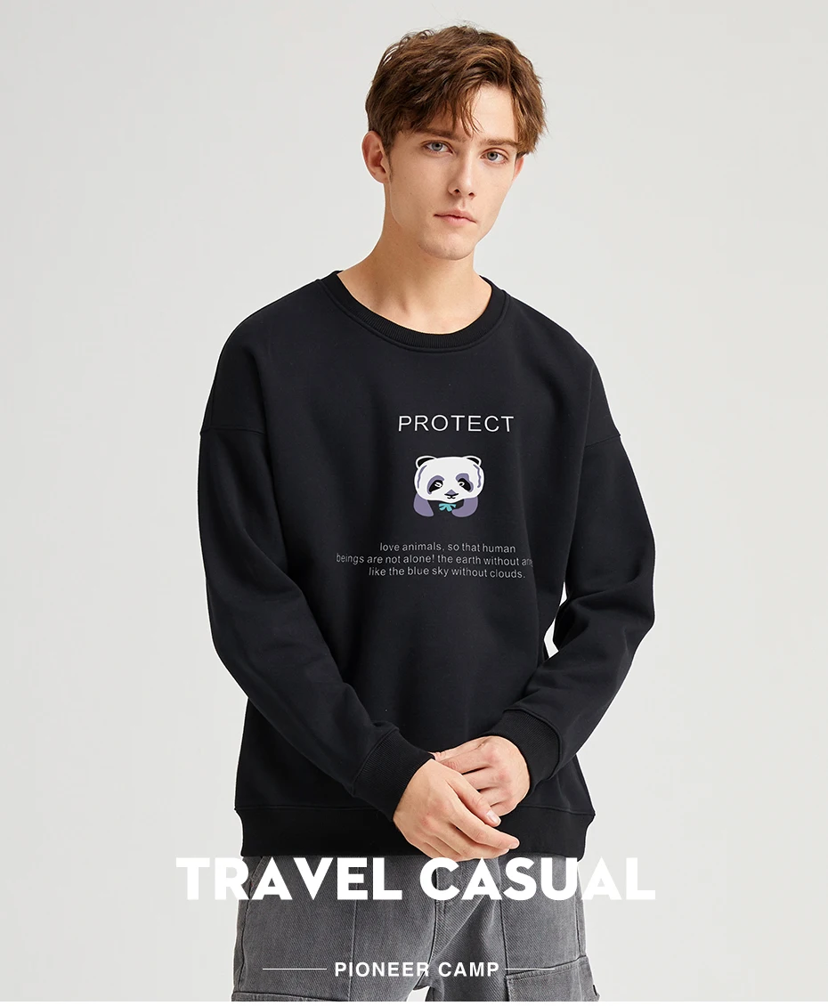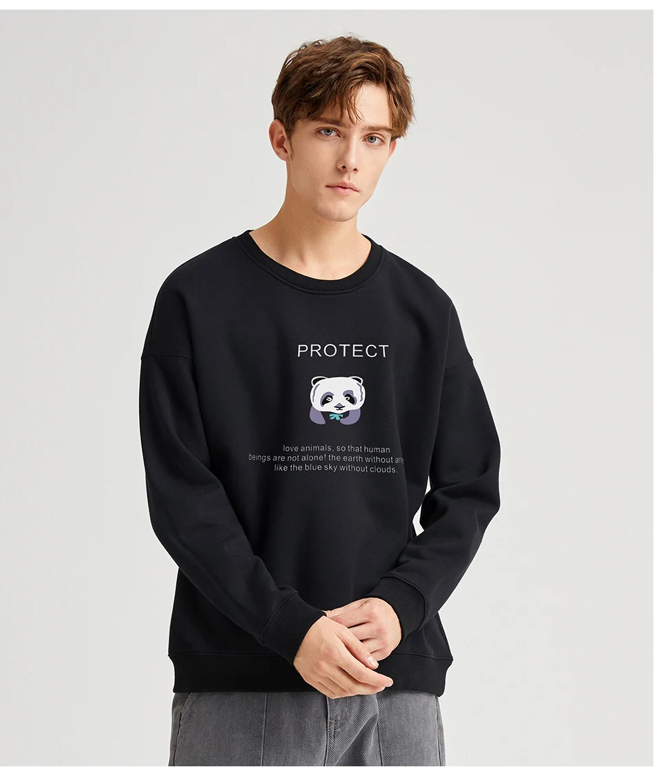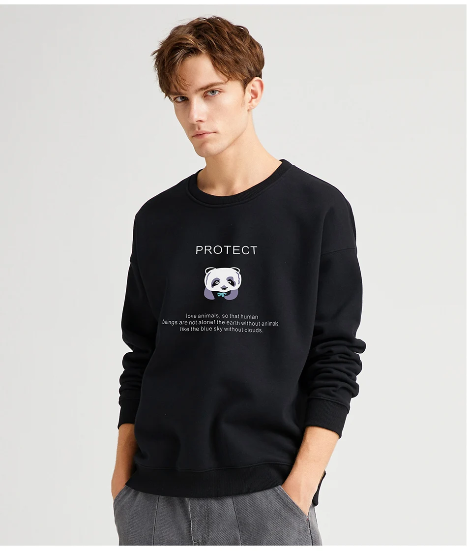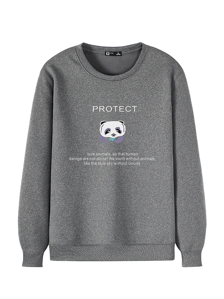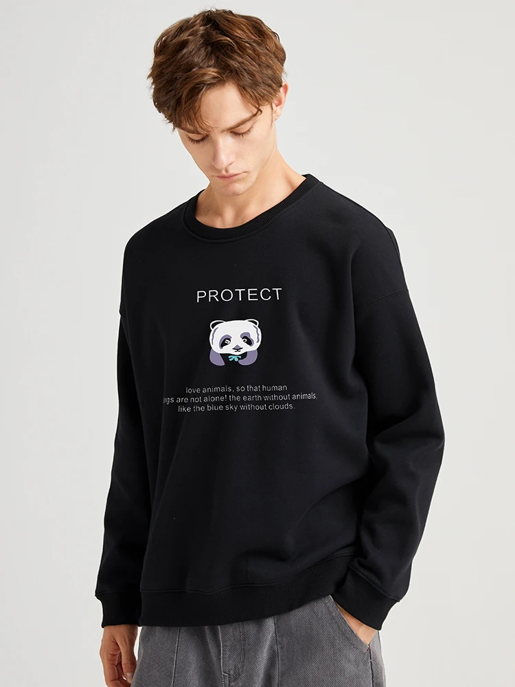 Свитшот мужской зимний с круглым вырезом и принтом панды