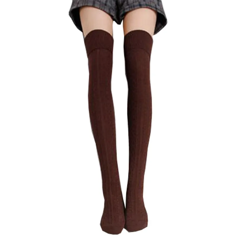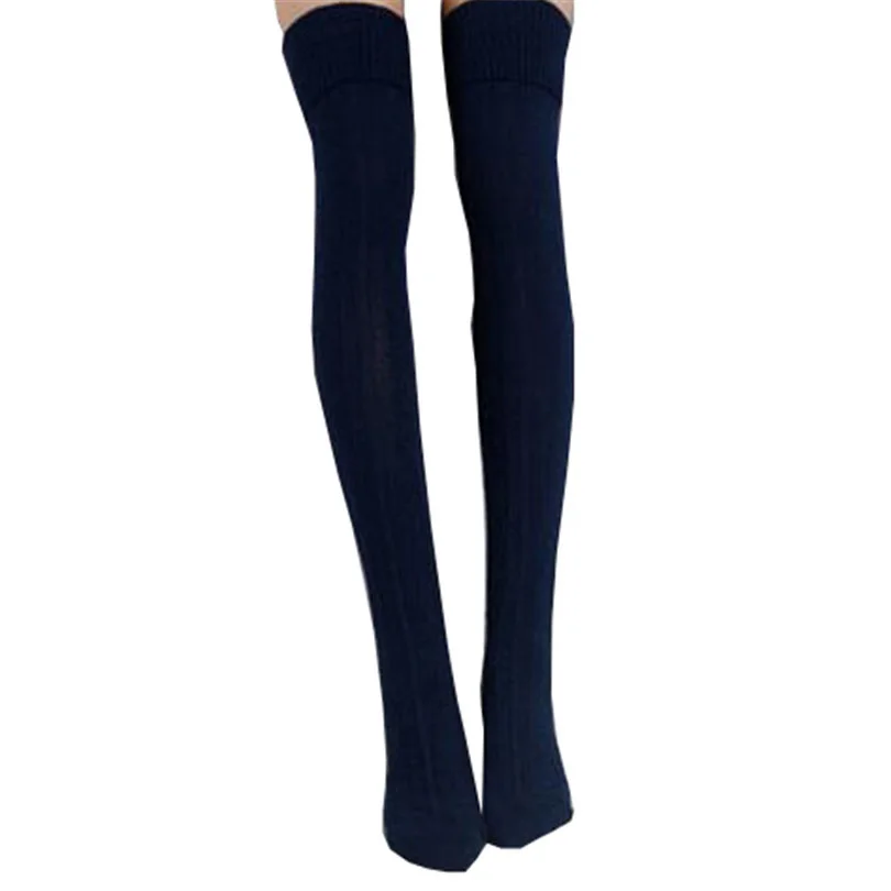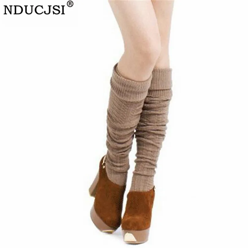 NDUCJSI шерстяной чулок для женщин до колена вязаные зимние сексуальные теплые чулки Длинные хлопковые Черные Полосатые чулки выше колена
