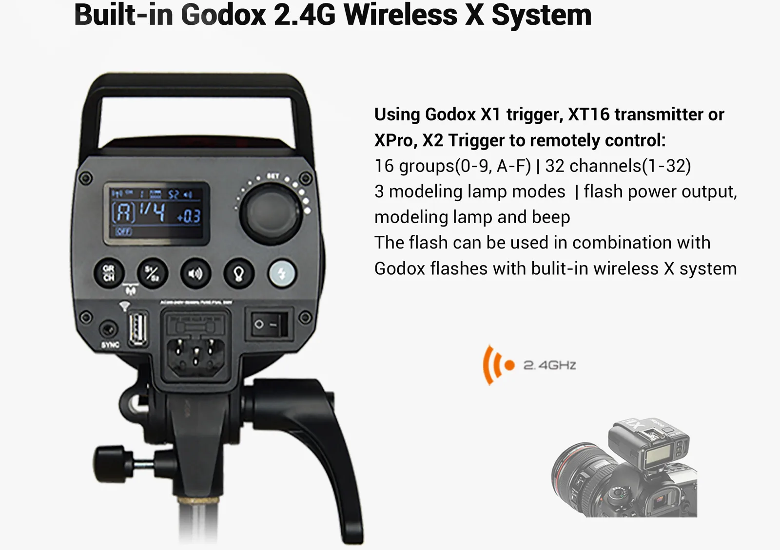 1 вспышка Godox MS300 (AC 220V) 1x Шнур Питания 1x крышка лампы 1x передатчик Godox X2T 1 лампа для моделирования