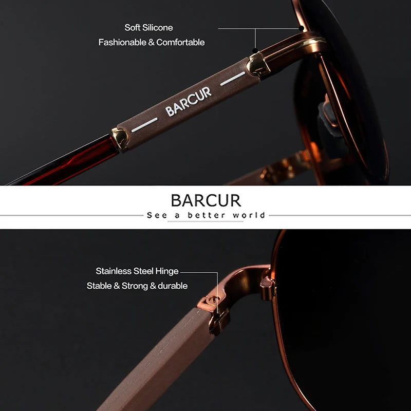 BARCUR, мужские солнцезащитные очки, пилот, поляризационные, солнцезащитные очки, мужские, женские, аксессуары для вождения