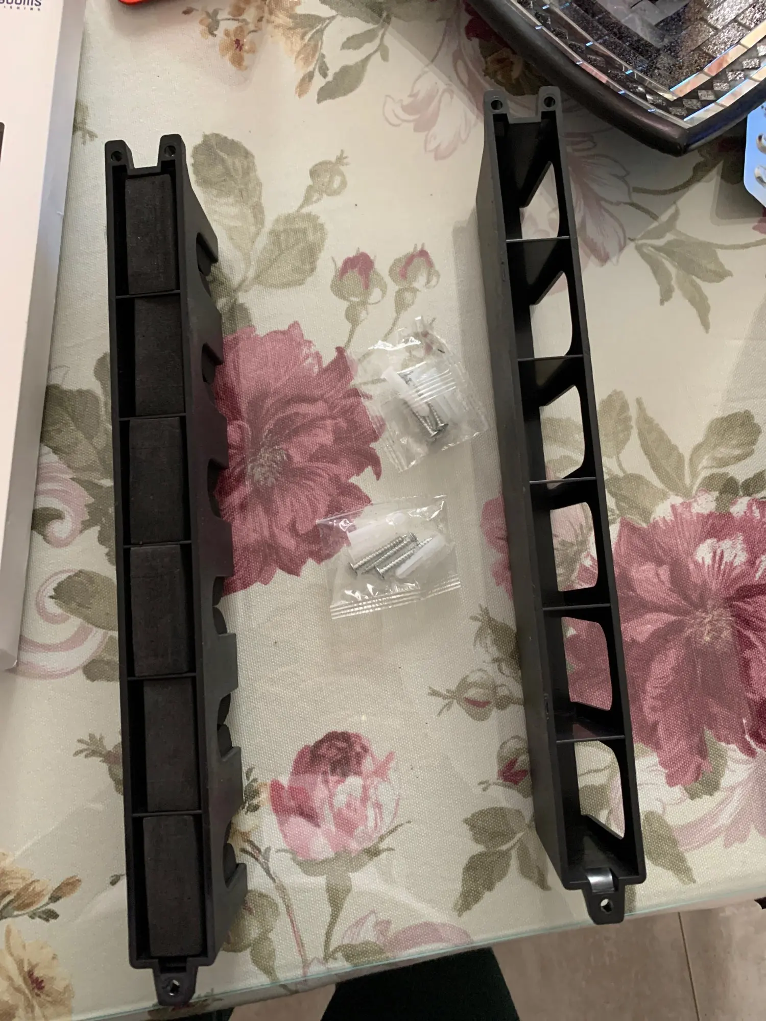 упаковки пришли мятыми, но крепеж и детали держателя целые, все ок повешу сфоткаю