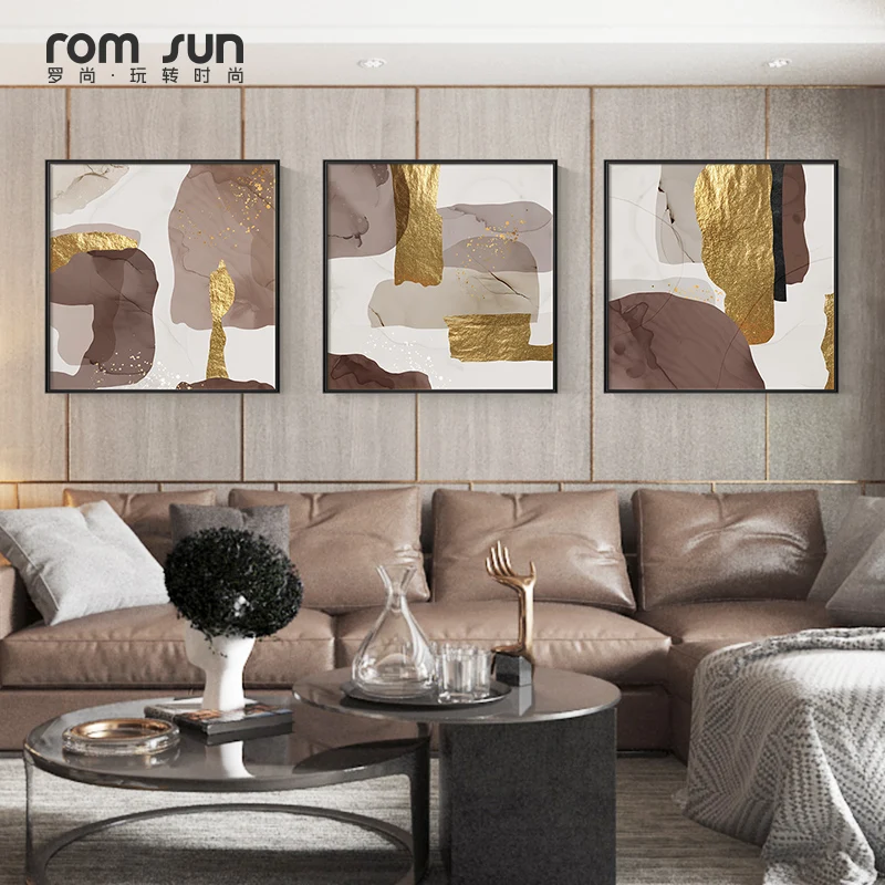 Новый абстрактный стиль Холст Картина золотой бар с коричневыми тенями плакат Настенные картины для гостиной комбинированная картина цвета