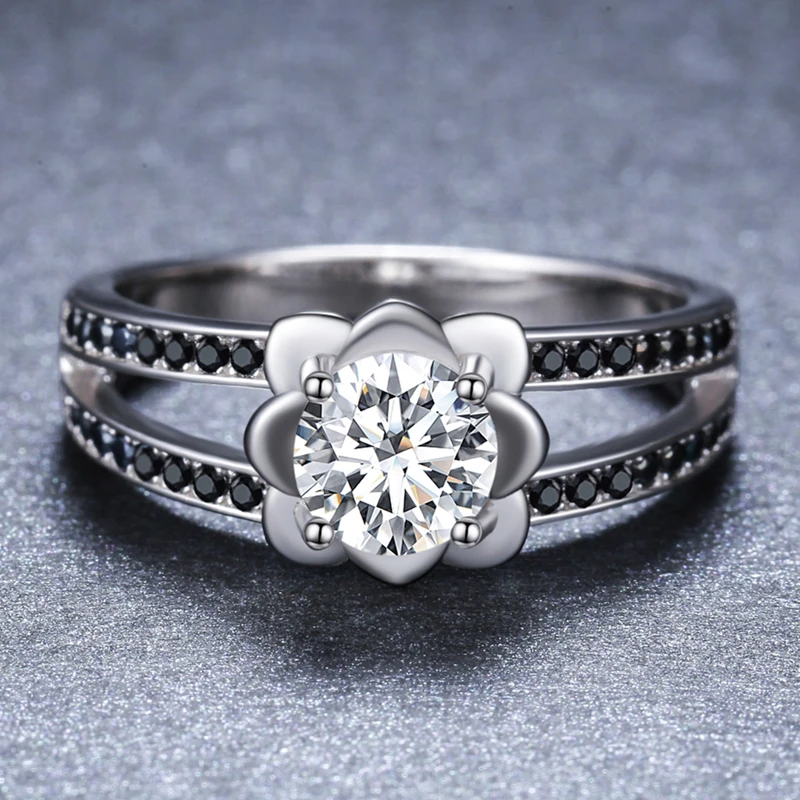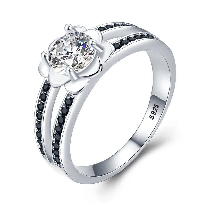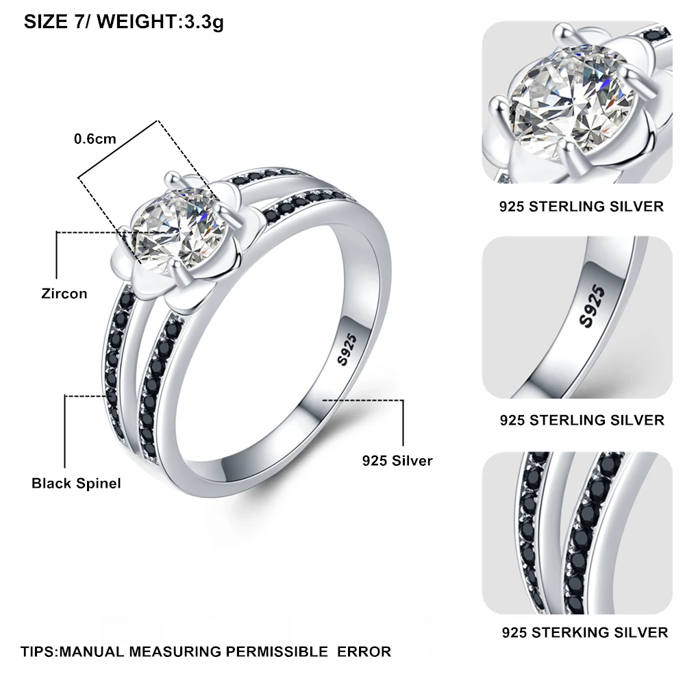 Женское кольцо из серебра 925 пробы с черной шпинелью
