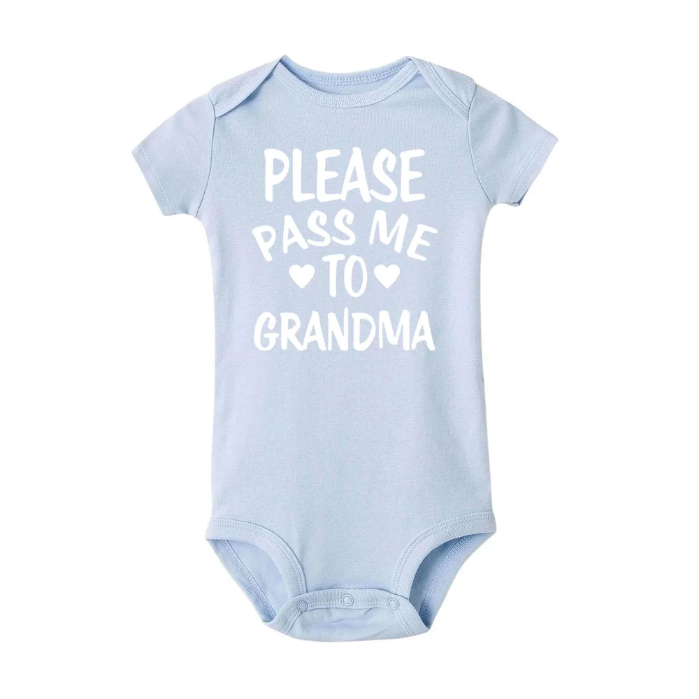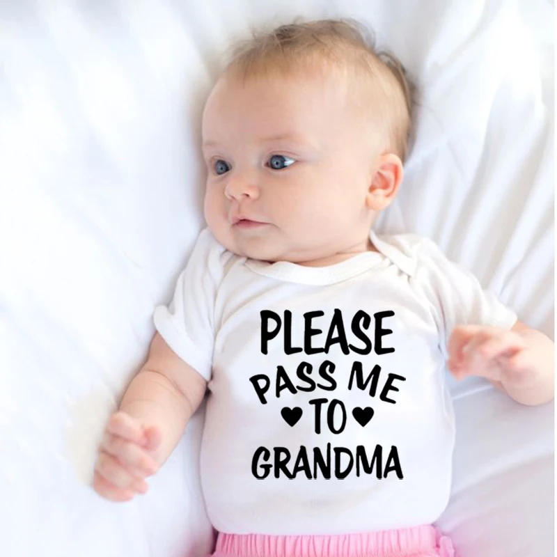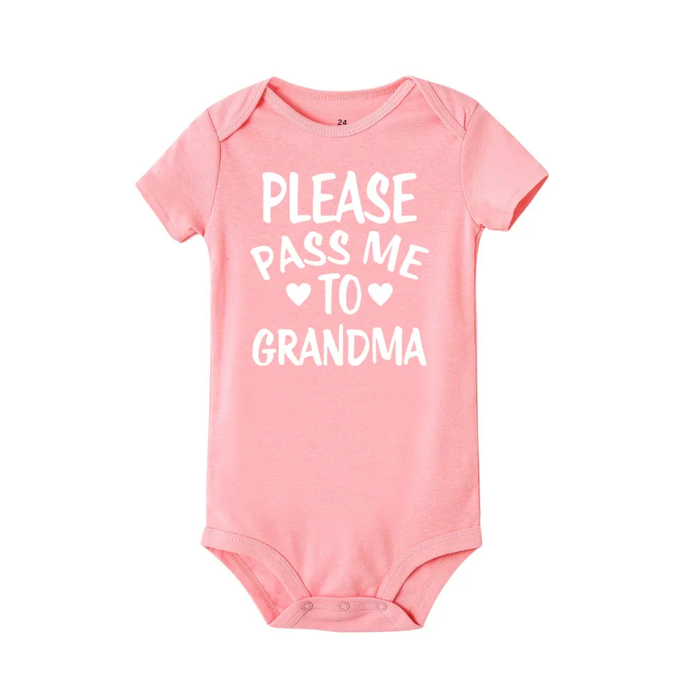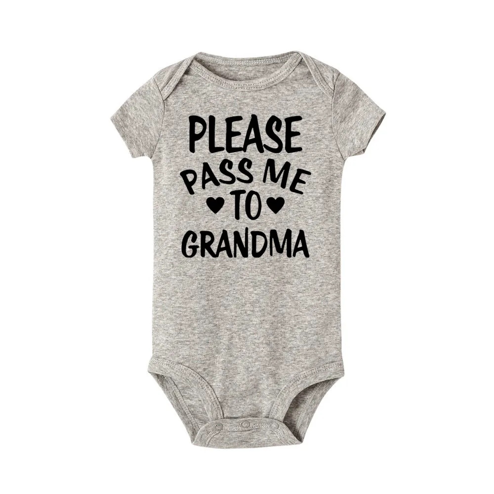 Передайте мне к бабушке принт веселый новорожденный BabyRomper Мода для малышей мальчиков и девочек, детский Снежный костюм, футболка с короткими рукавами и милым комбинезон наряд