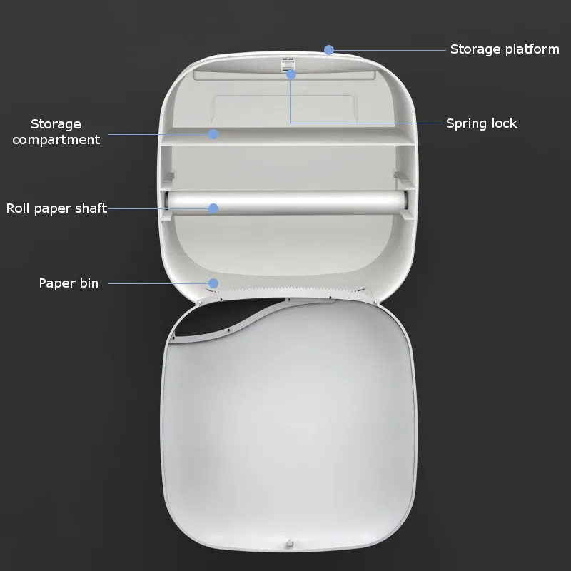 Особенности: Двойной объем запоминающего устройства Удар Бесплатная установка Портативный пружинный замок Сильную несущую способность Подходит для различных длин бумажных полотенец, рулонной бумаги, тканей и т. д.