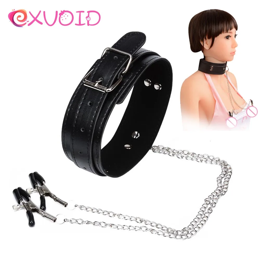 Кожаный шейный ошейник EXVOID с зажимом для сосков, для БДСМ, Хэлло...
