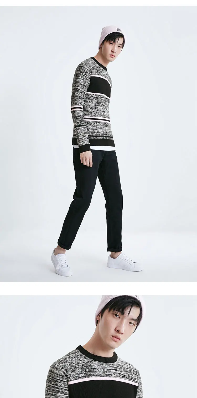 Мужской трикотажный свитер в полоску, с круглым вырезом
