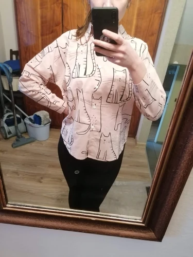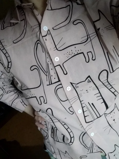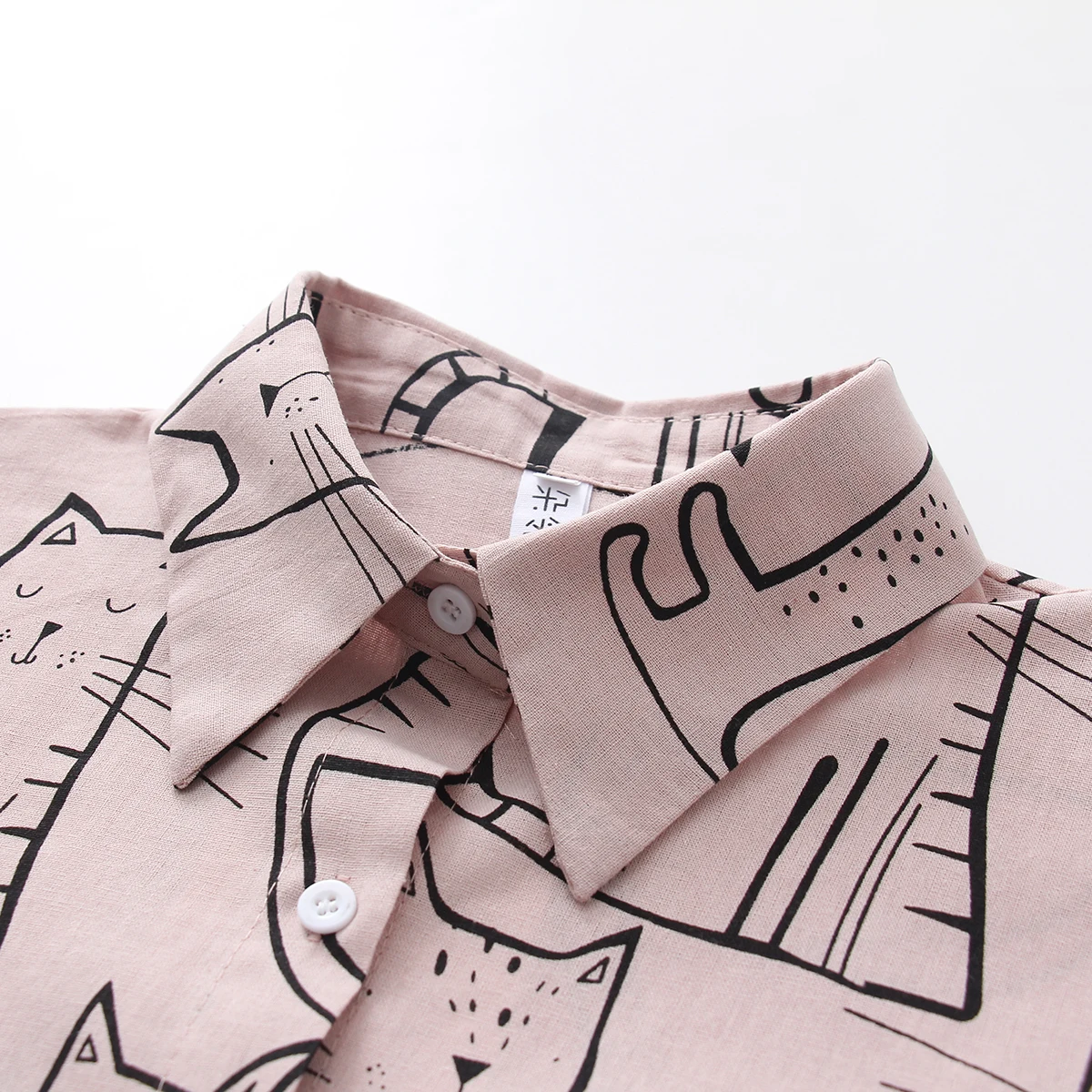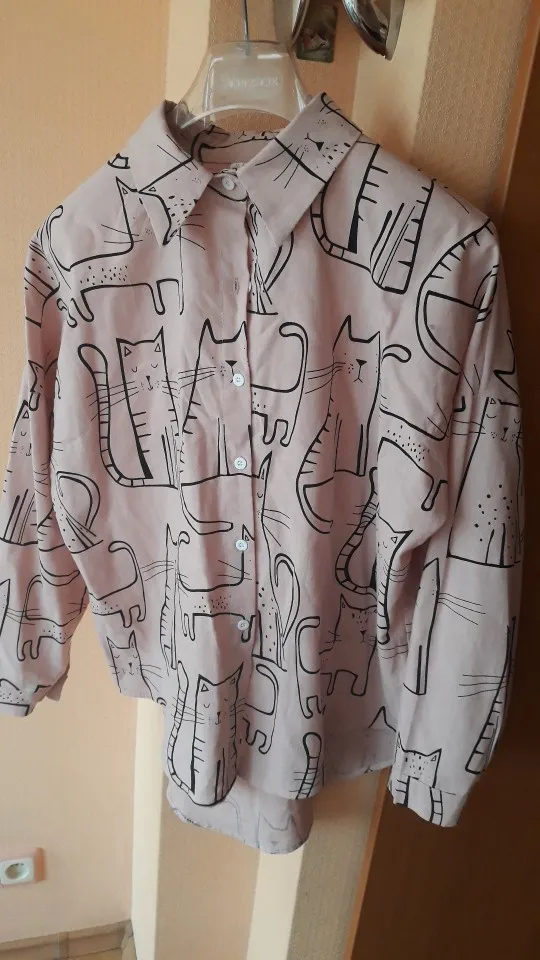 Женская рубашка с длинным рукавом, Повседневная Свободная блузка с принтом кота в винтажном стиле, весна-осень 2022