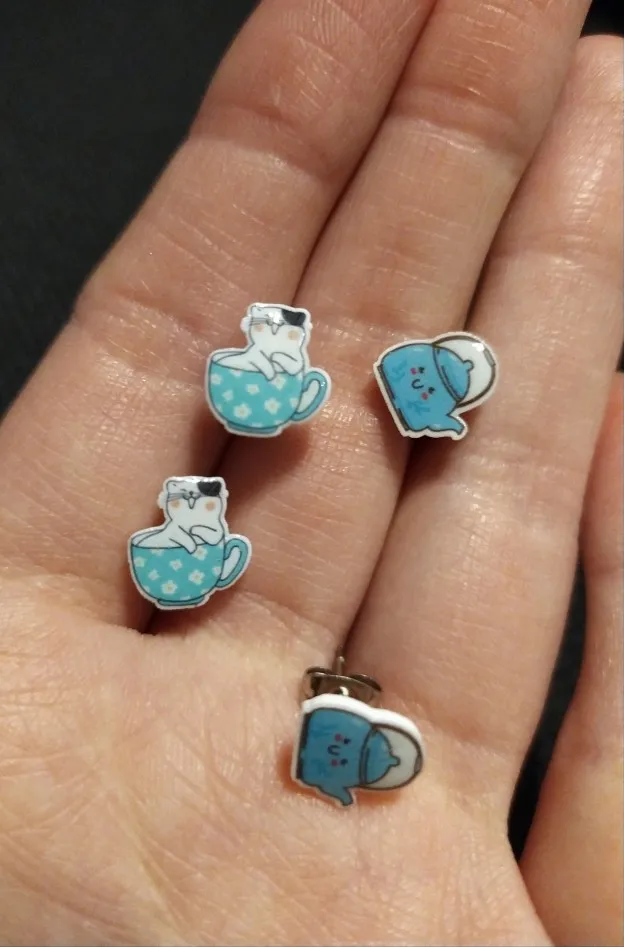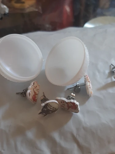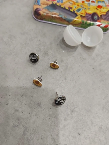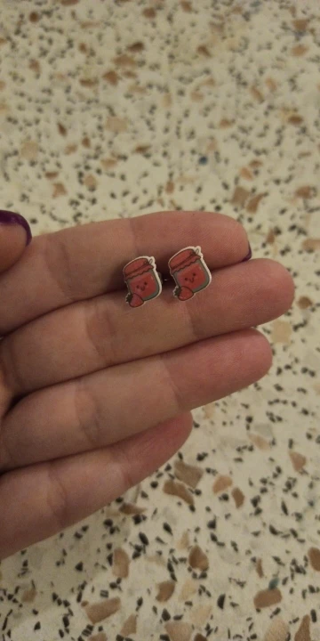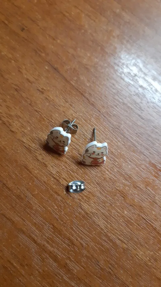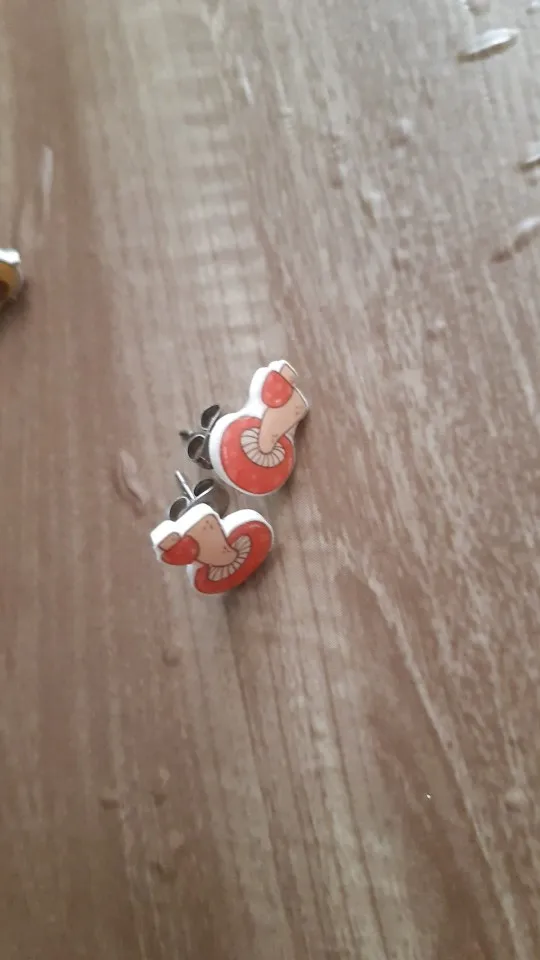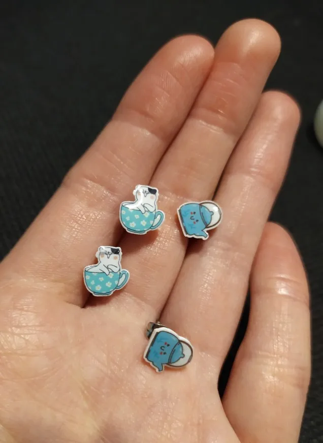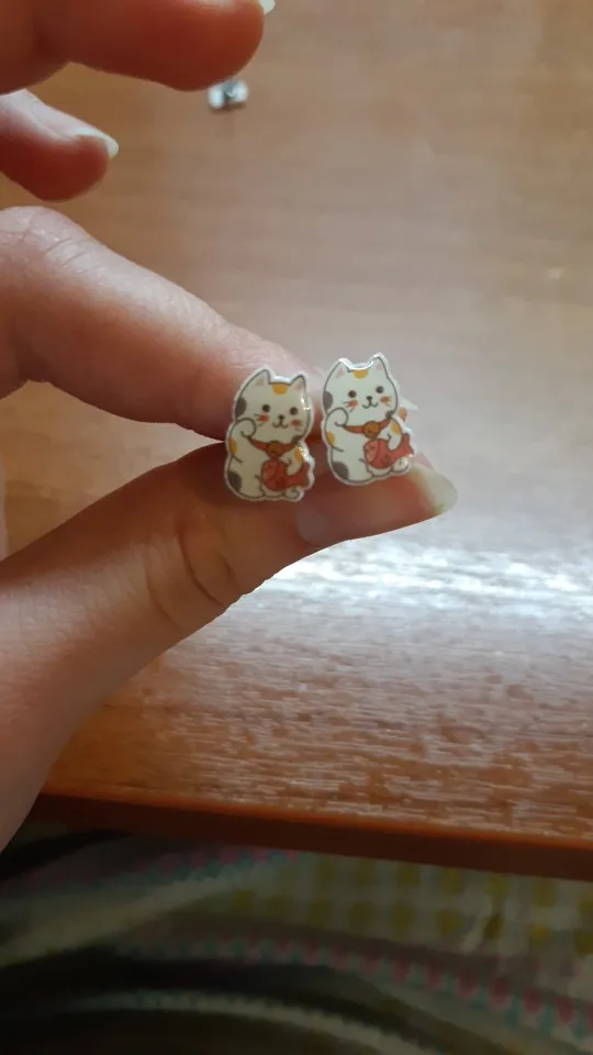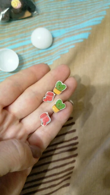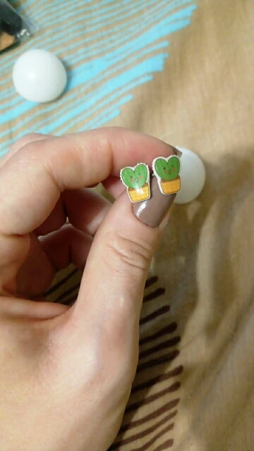 Милые маленькие серёжки ^_^ Предупреждаю, очень маленькие (!) Доставлены были в срок, без повреждений. Упаковка нормальная. Сами серёжки милые и качественные. Печать на них, хоть и мелкая, но чёткая. А цвета, как и указано у продавца - такие же. В принципе, я довольна. Очень симпатичные)
