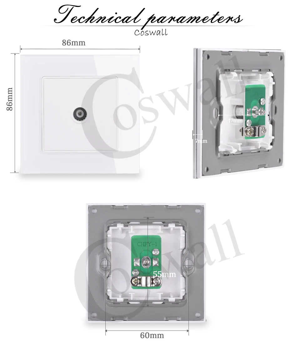 COSWALL Хрустальная рамка из закаленного стекла, настенная розетка, 1 банда, женский ТВ разъем, телевизионный порт, серия C1, белый, черный, золотой