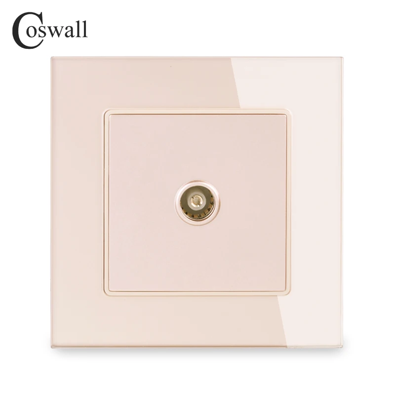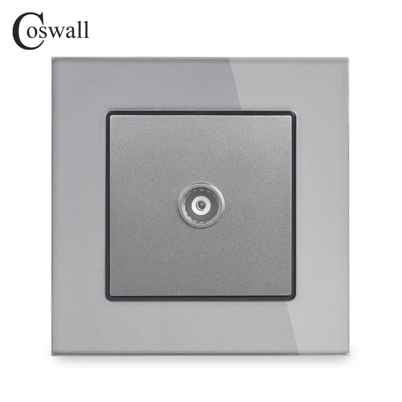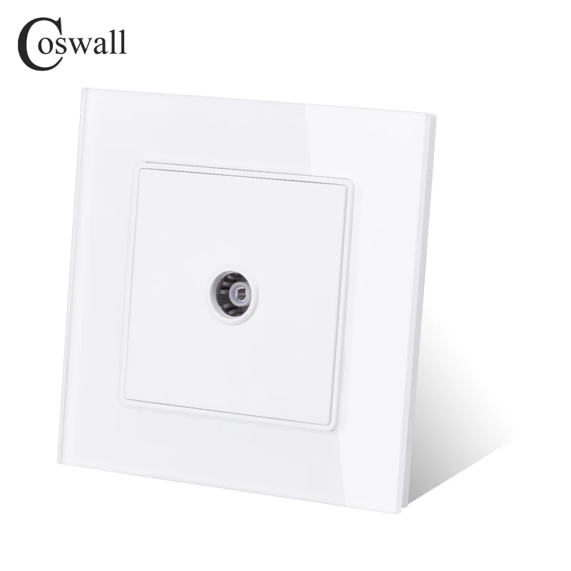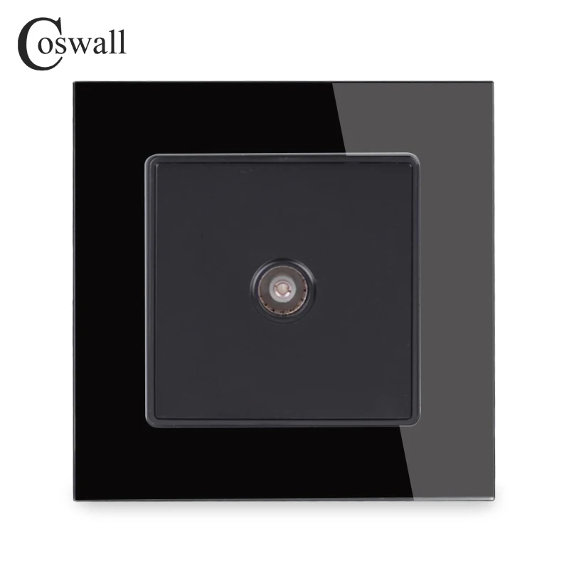 Настенная розетка COSWALL, кристаллическая рамка из закаленного стекла, 1 гнездо, ТВ-разъем, телевизионный порт Серии C1, цвет белый, черный, золотой