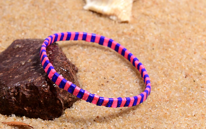 Когда вы надеваете его, он не остается круглым. В моем случае браслет пришел с двумя узлами в разных частях браслета и не идеально круглый. Это выглядело красивее на фото
