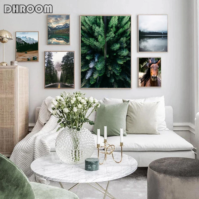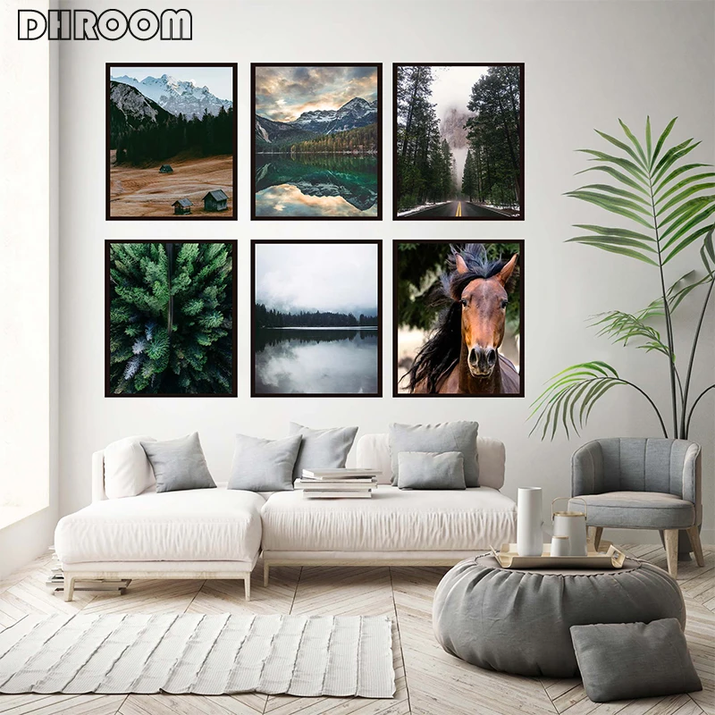 Скандинавский природный пейзаж, холст, живопись, гора, стена, искусство, лошадь, фотография и принты для гостиной, домашний декор