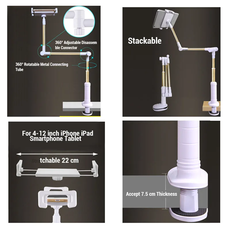 Подставка для планшета с длинной ручкой, держатель для телефона 4-12 дюймов, подставка для ленивого стола, подставка для телефона, планшета, крепление на 360 градусов, зажим для iPad iPhone