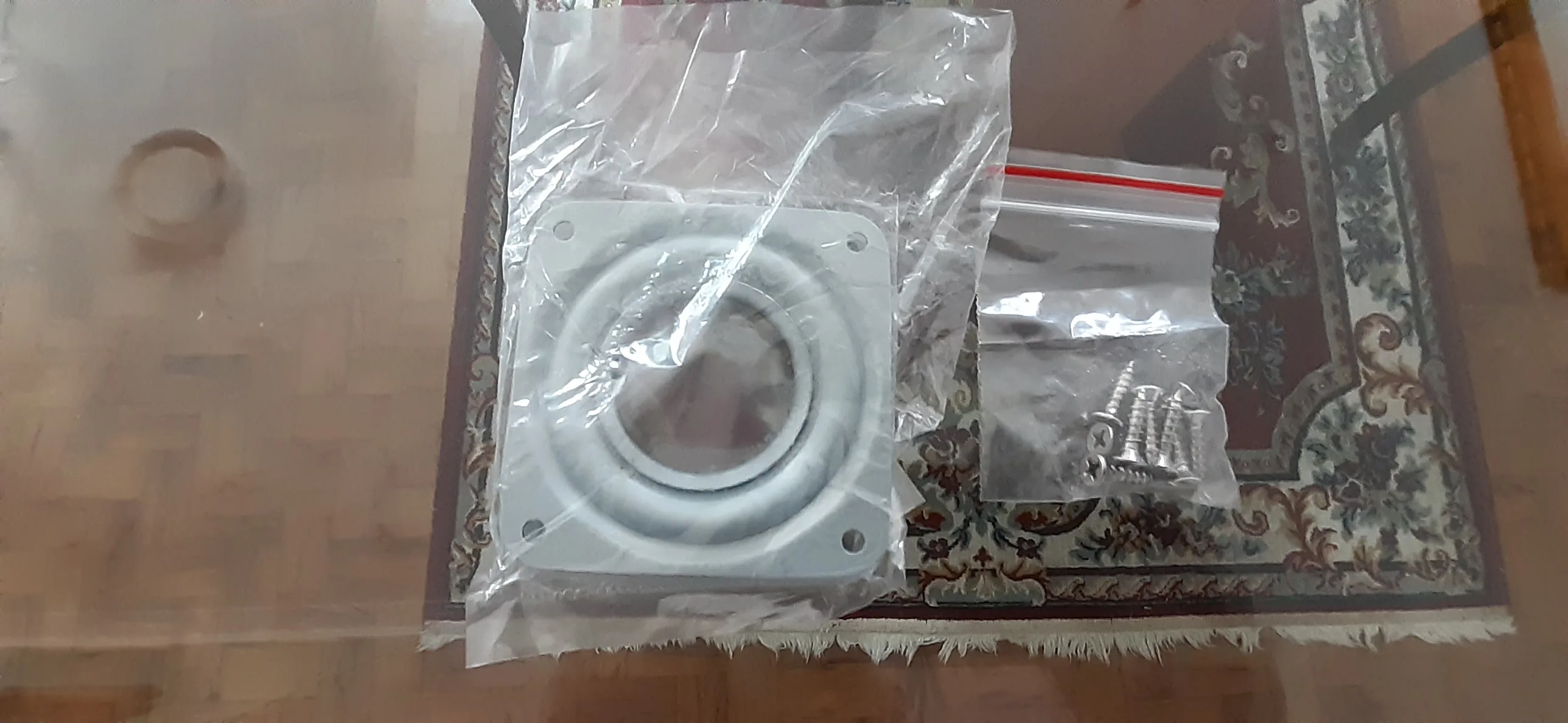 отлично доставлено без повреждений. очень повезло! потому что упаковка никакая, завернуто просто в пленку закинули в конверт и все. в комплекте 8-шт(саморезов). подшипник в смазке.