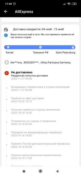 Страна: FR Доставка: Cainiao Super Economy Global 17.12.2020