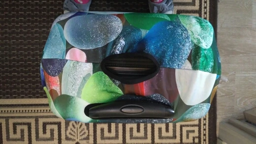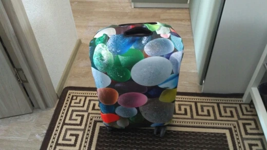 Чехол отличный, на чемодан сел как влитой. Все замочки совпадают с ручками. Материал очень плотный,хорошо прошит. Запаха нет. Заказывайте,не пожалеете