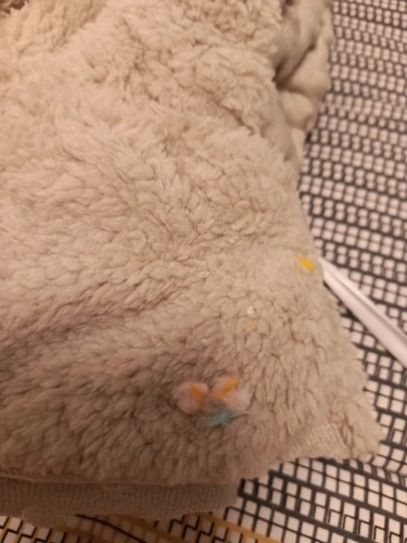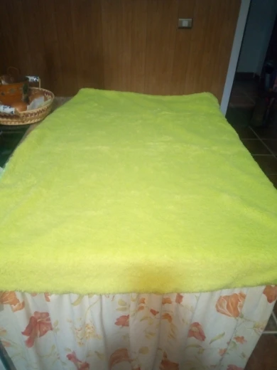 Продукт, как видно на фотографиях. Качество хорошее, но может быть лучше по цене. Форма не совсем прямоугольная, но это небольшая деталь, которая не влияет на использование. Когда я вынул его из упаковки, у него были нити одеяла других цветов. Мягкий материал.