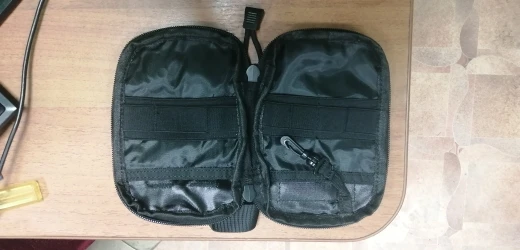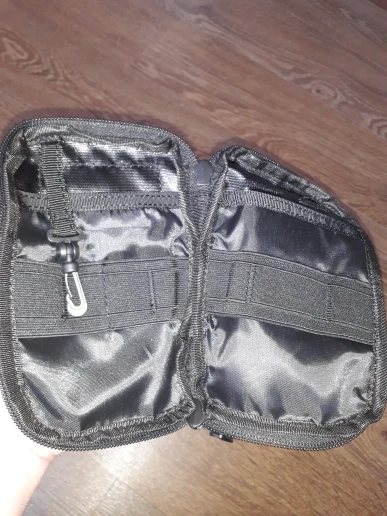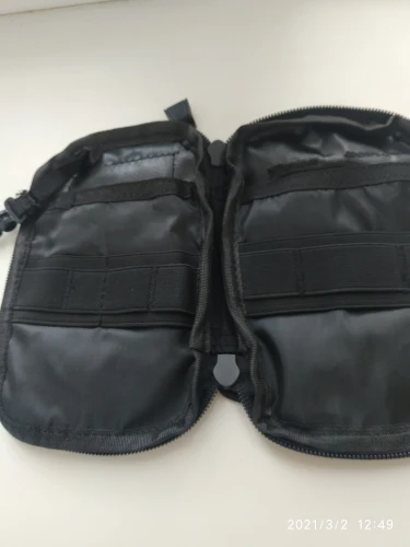В целом нормальный подсумок, материал внутри обработан с намеком на водоотталкивание, но я бы не рассчитывал на это. внутри по одному плоскому карману на каждой стороне и по 2 ряда резинок для организации, карабин. сзади молле-крепления. На переднем кармане-сетке отсутствует застежка (должна быть велкро-липучка). Это единственный недочет, кому не критичен - могу рекомендовать к приобретению. Для небольшой технички/аптечки подойдет. В остальном товаром доволен, качество нормальное, нитки не торчат, отправили быстро, до Москвы за 8 дней