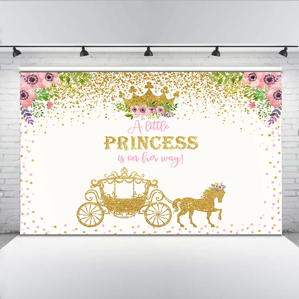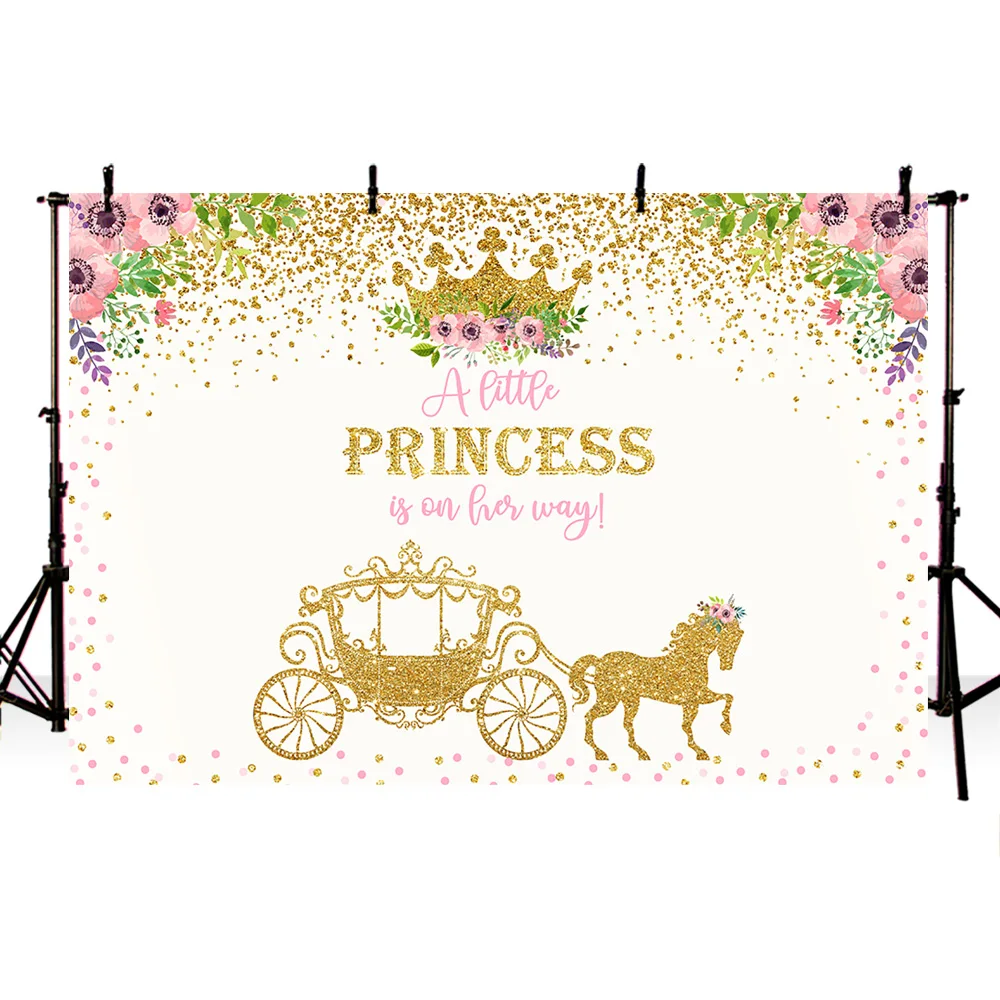Фон для фотосъемки маленькой принцессы фон для фотосъемки новорожденных детей с золотой каретой и короной цветочный фон для фотосъемки