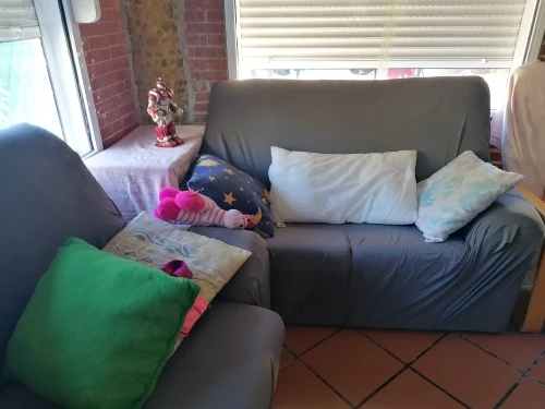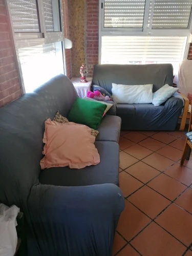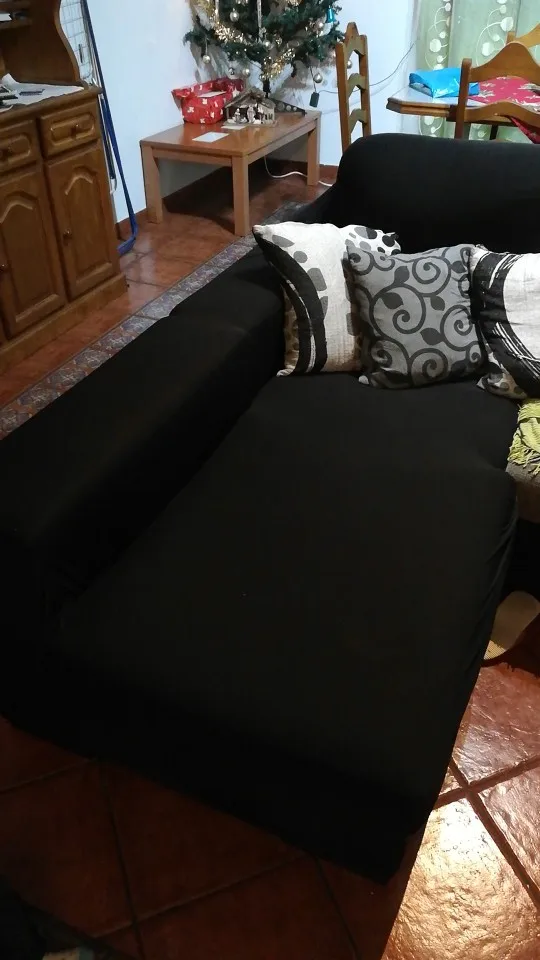 Mi sofá es un poco raro, así que tuve que pedir 2 piezas de tres asientos y en la foto adjunta ya veis como queda. No esta mal, lo puse yo solo y creo que ha quedado presentable. Por cierto, enviado super rápido, en dos días estaba en casa.