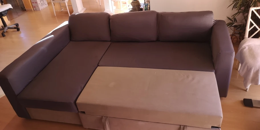 Мне очень нравится. Он пришел вовремя, и сказал, что это будет. Цвет точно такой же, как на картинке. Очень хорошее качество, все швы аккуратные. Я в восторге. В конце концов, я разрешил его повесить вместо того, чтобы подвешивать его, потому что я хотел немного более уютный вид, так как он в моем. Спальня, плюс у меня есть некоторые вещи под ней, которые я хотел спрятать. Но его можно заправить, материал немного растягивается, поэтому он повторяет все линии дивана. Плюс вы можете положить эти белые вещи-это помогает избежать морщин. Я очень доволен товаром, спасибо.