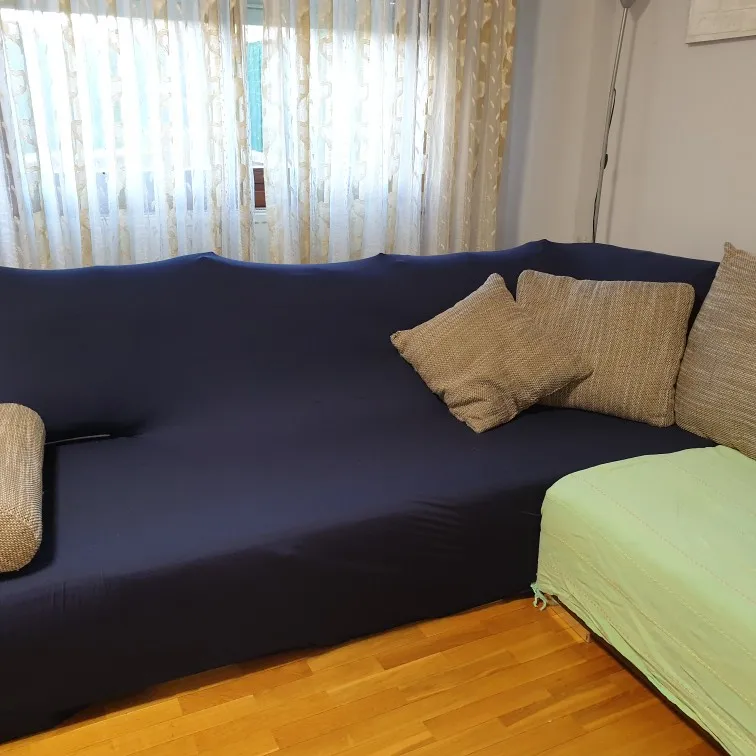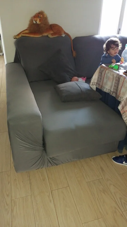 Я купил его для дивана 3 s. Но я обнаружил, что он маленький, я поместил его в другой 2-местный. Резиновые пробки, которые вы носите в форме. В моем случае они непрерывно появляются, ткань довольно эластичная и конечная.