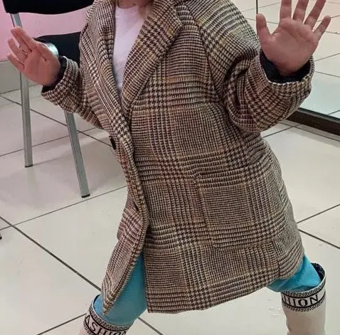 Осень 2021, хлопковое длинное пальто с рисунком гусиные лапки для д...